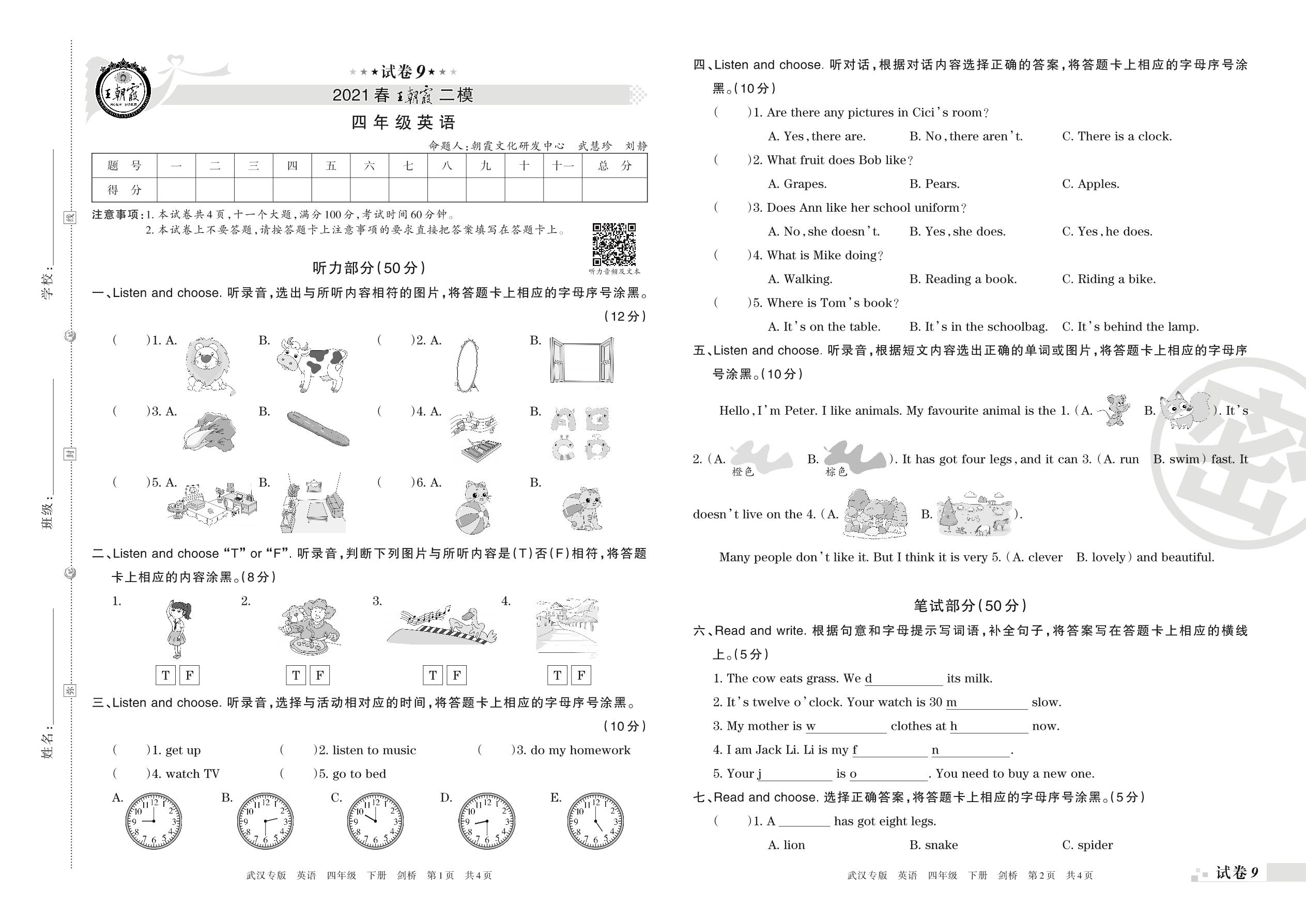 王朝霞期末模拟卷四年级下册英语(剑桥版)_R21080784941【9】