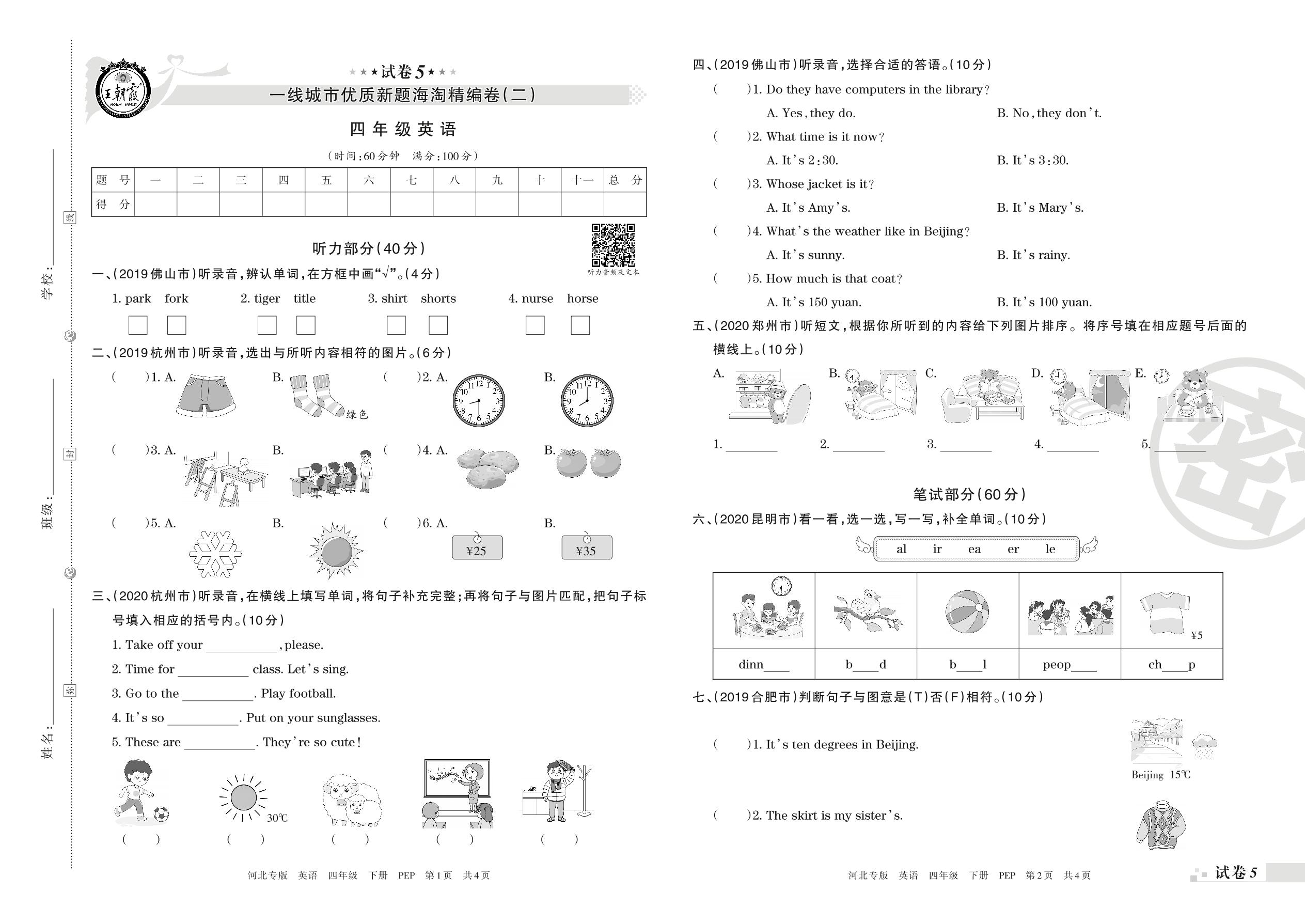 王朝霞海淘期末精编卷四年级下册英语(PEP版)_R21080785027【5】