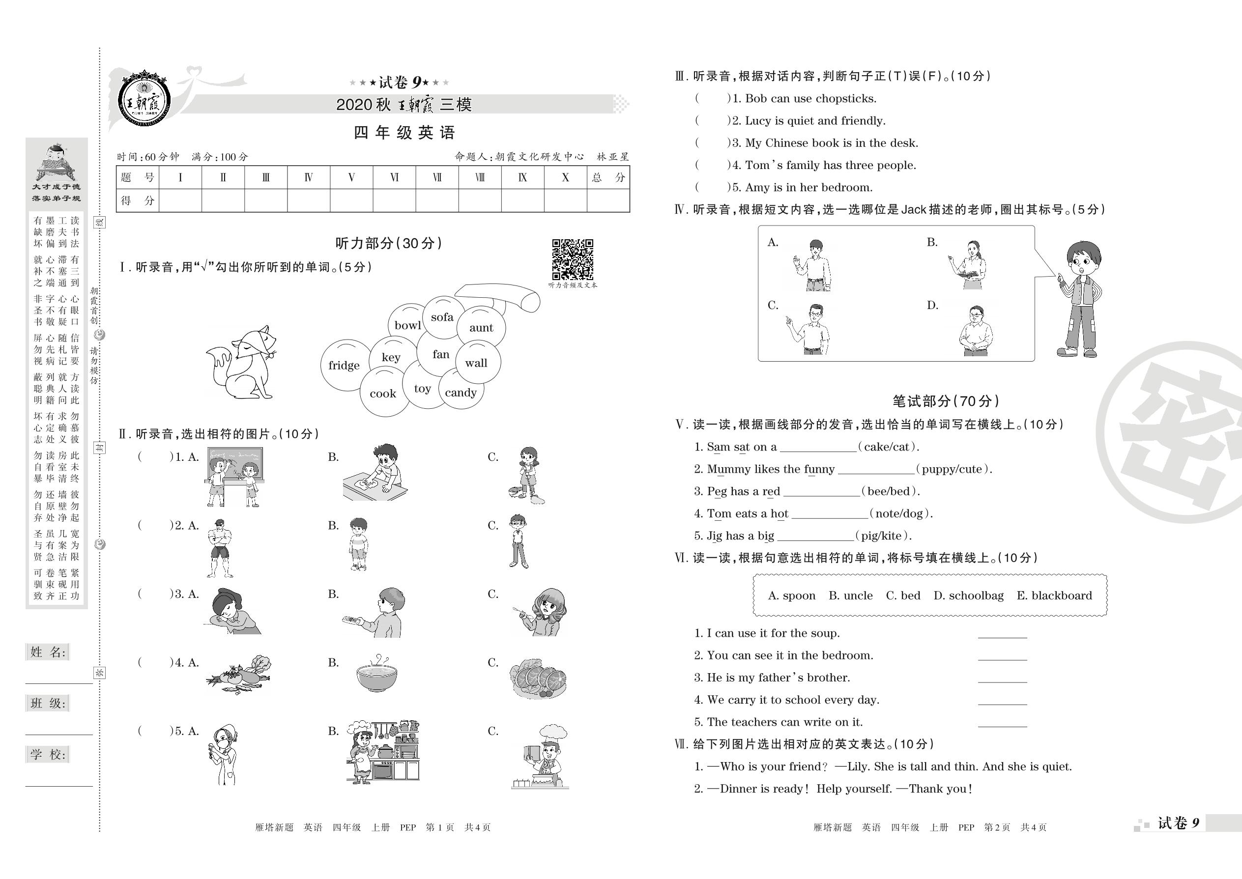 王朝霞期末模拟卷四年级上册英语(PEP版)_R21080785207【9】