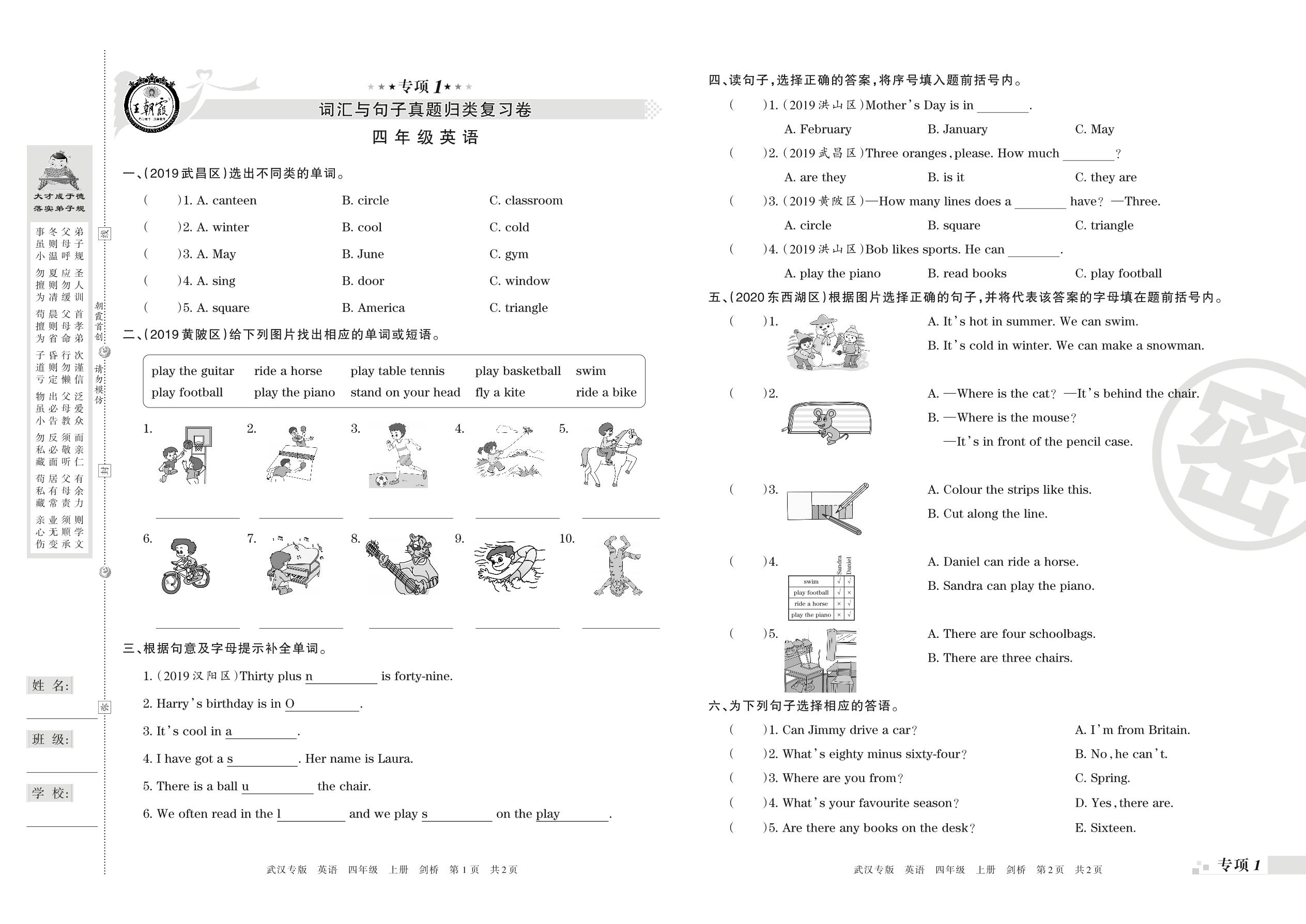 王朝霞期末专项卷——词汇与句子、阅读理解四年级上册英语(剑桥版)【0】