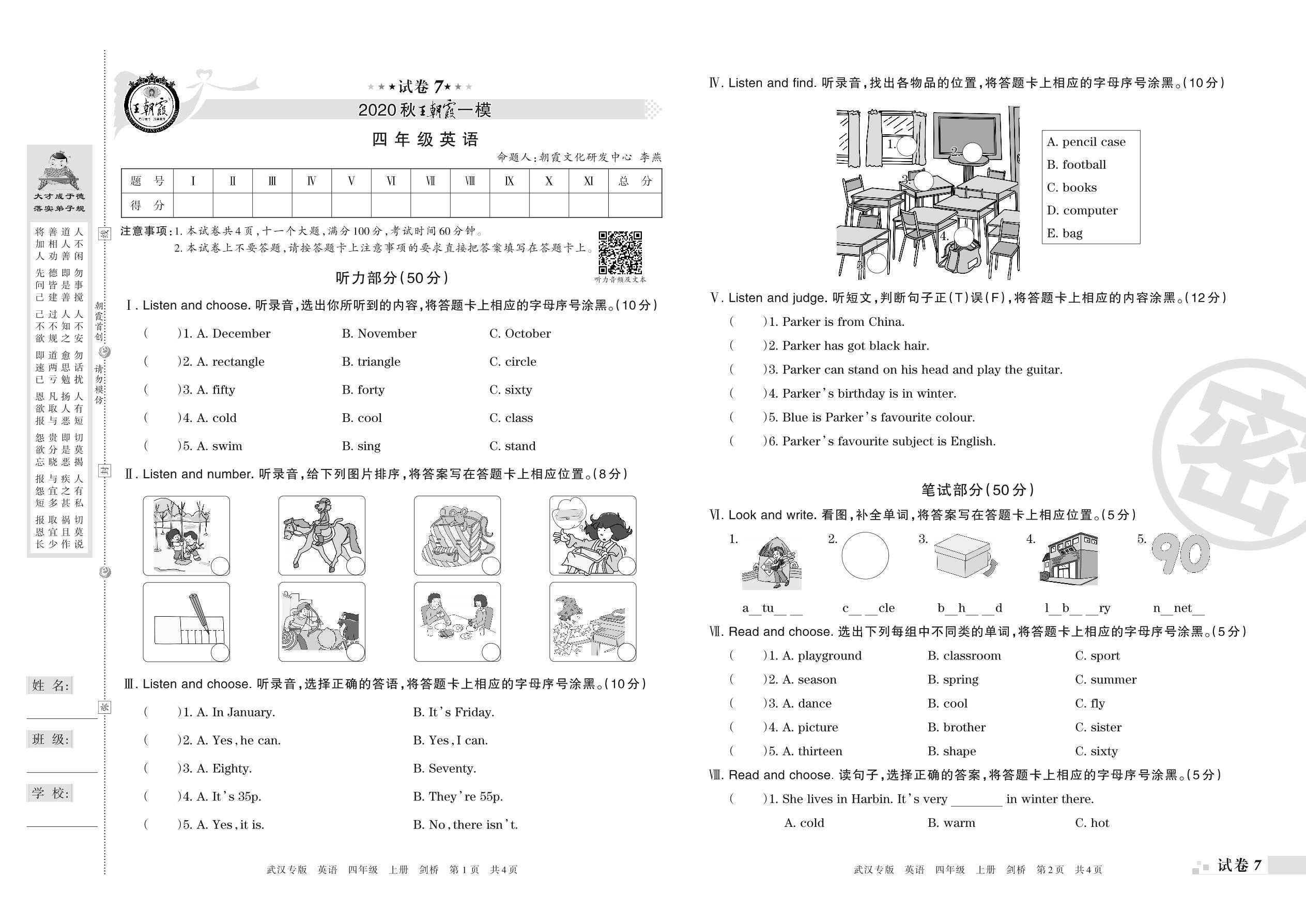 王朝霞期末模拟卷四年级上册英语(剑桥版)_R21080785306【7】