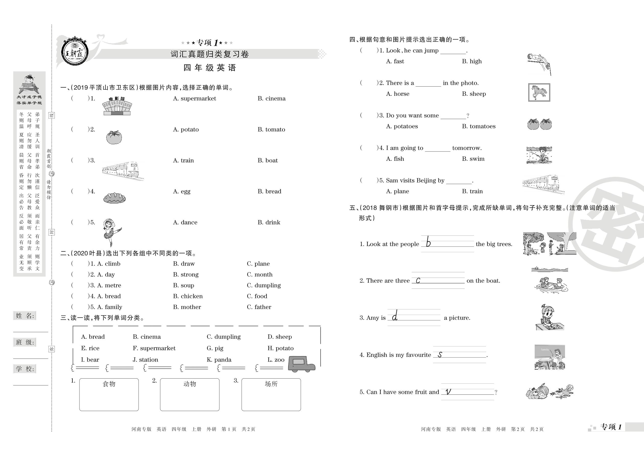 王朝霞期末专项卷——词汇、句子真题归类复习四年级上册英语(外研版)【0】