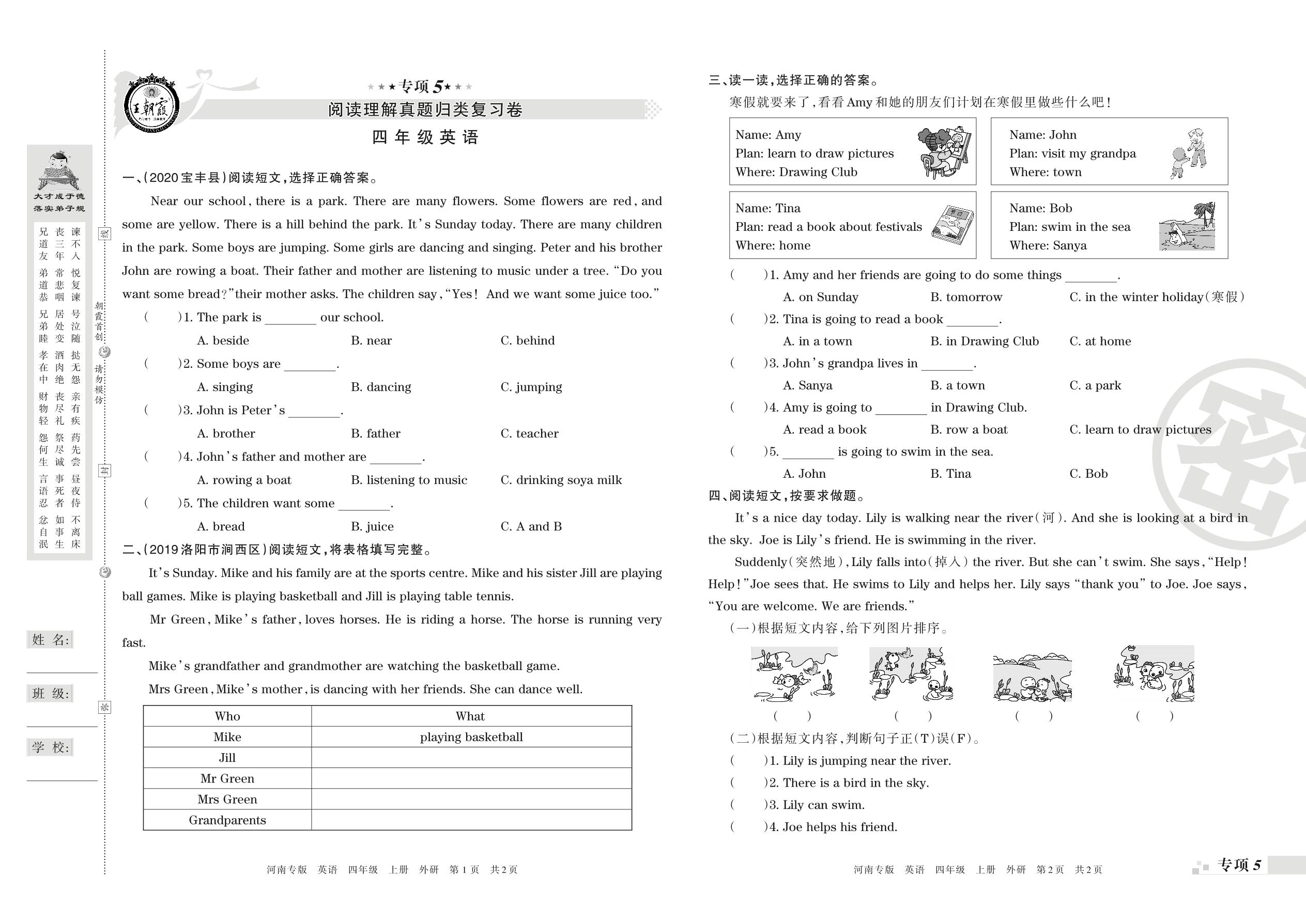王朝霞期末专项卷——阅读理解真题归类复习、绘本阅读四年级上册英语(外研版)【0】