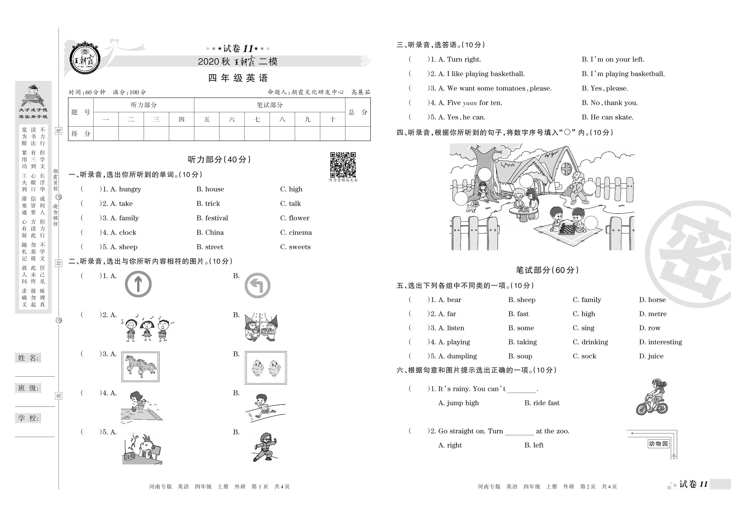 王朝霞期末模拟卷四年级上册英语(外研版)_R21080785441【11】