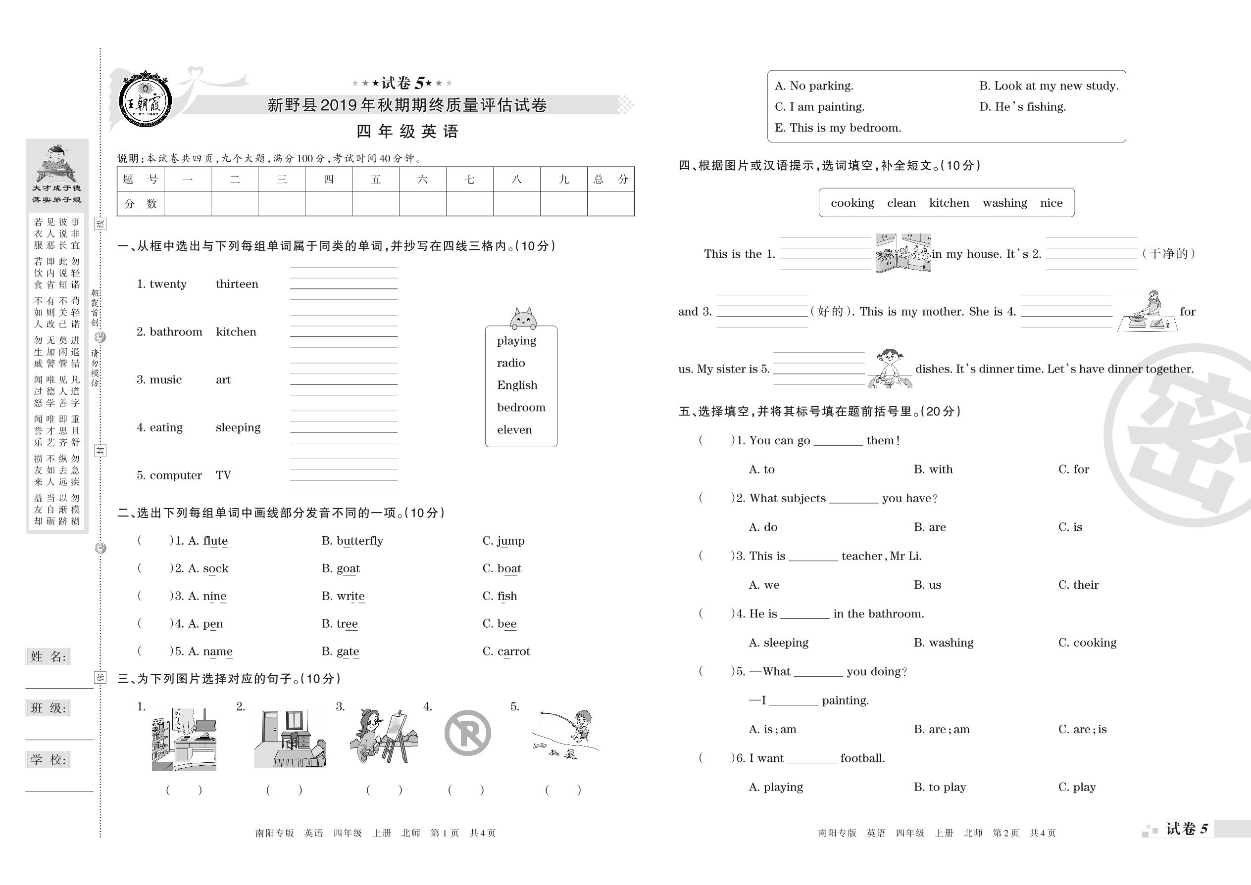 2019-2020学年第一学期南阳市新野县四年级英语试卷(北师版)【5】