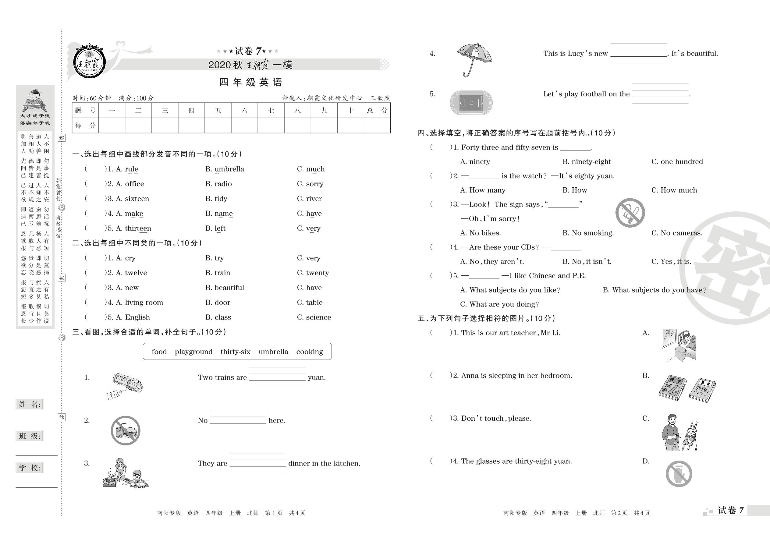 王朝霞期末模拟卷四年级上册英语(北师版)_R21080785532【7】