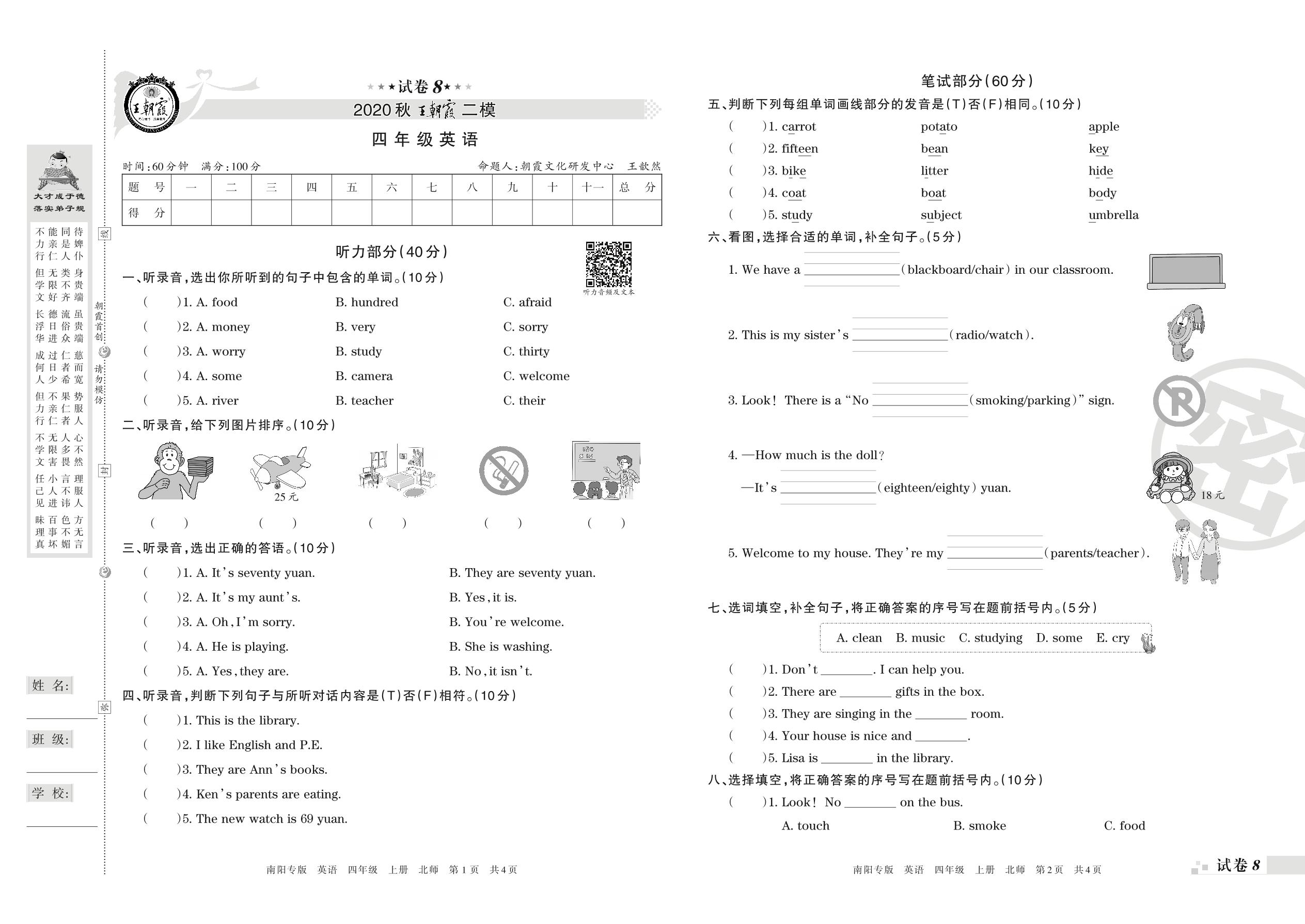 王朝霞期末模拟卷四年级上册英语(北师版)_R21080785535【8】