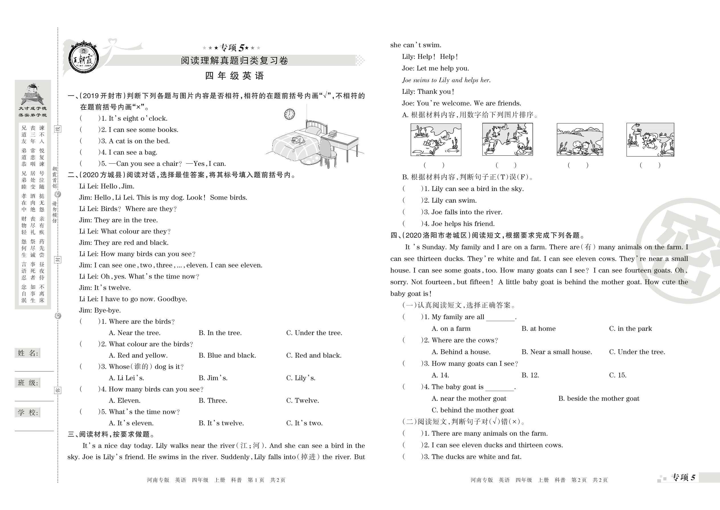 王朝霞期末专项卷——阅读理解真题归类复习、绘本阅读四年级上册英语(科普版)【0】