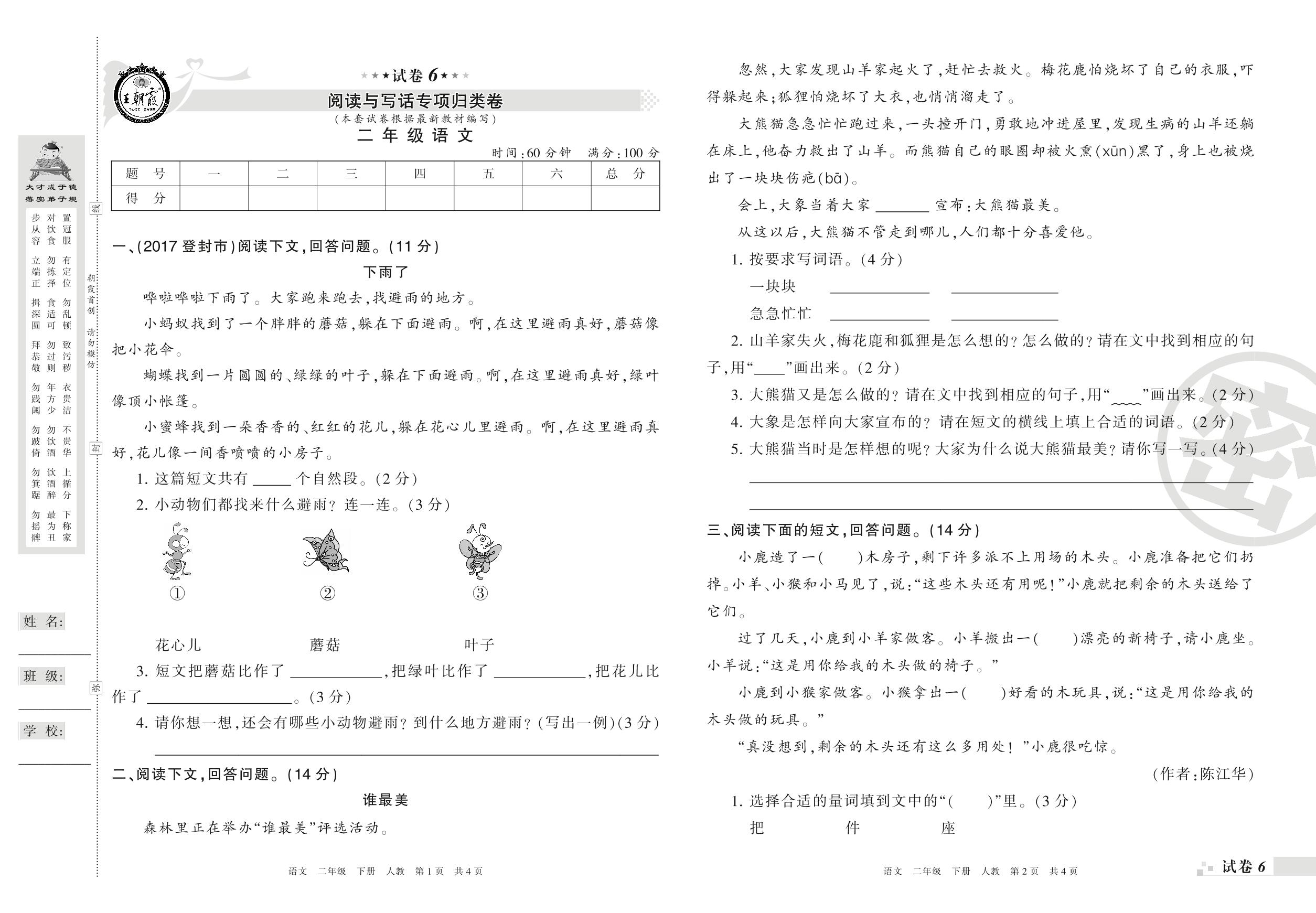 王朝霞期末专项卷——阅读与写话专项归类卷二年级下册语文(人教版)_R21080181127【6】