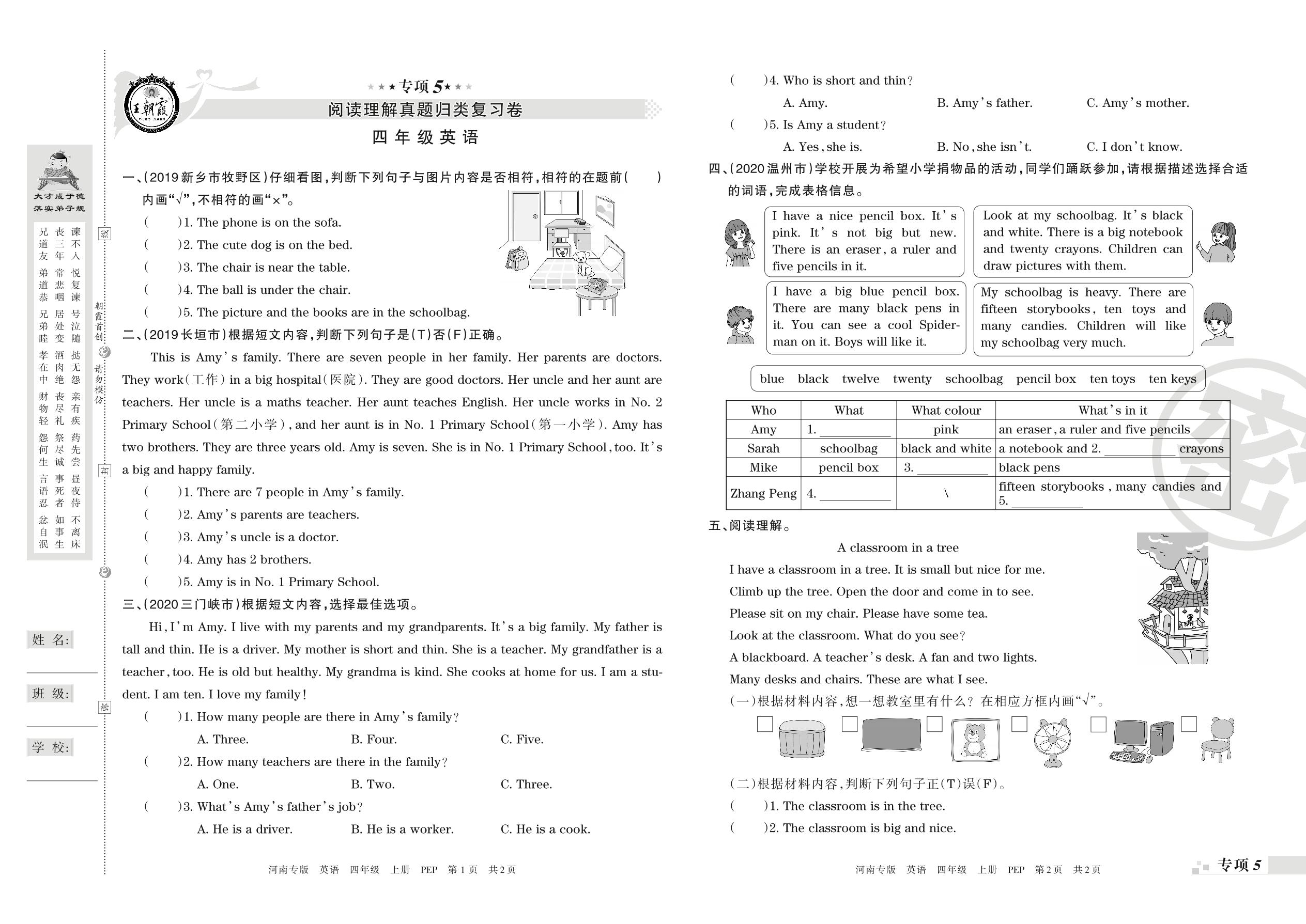 王朝霞期末专项卷——阅读理解真题归类复习、绘本阅读四年级上册英语(PEP版)_R21080785858【0】