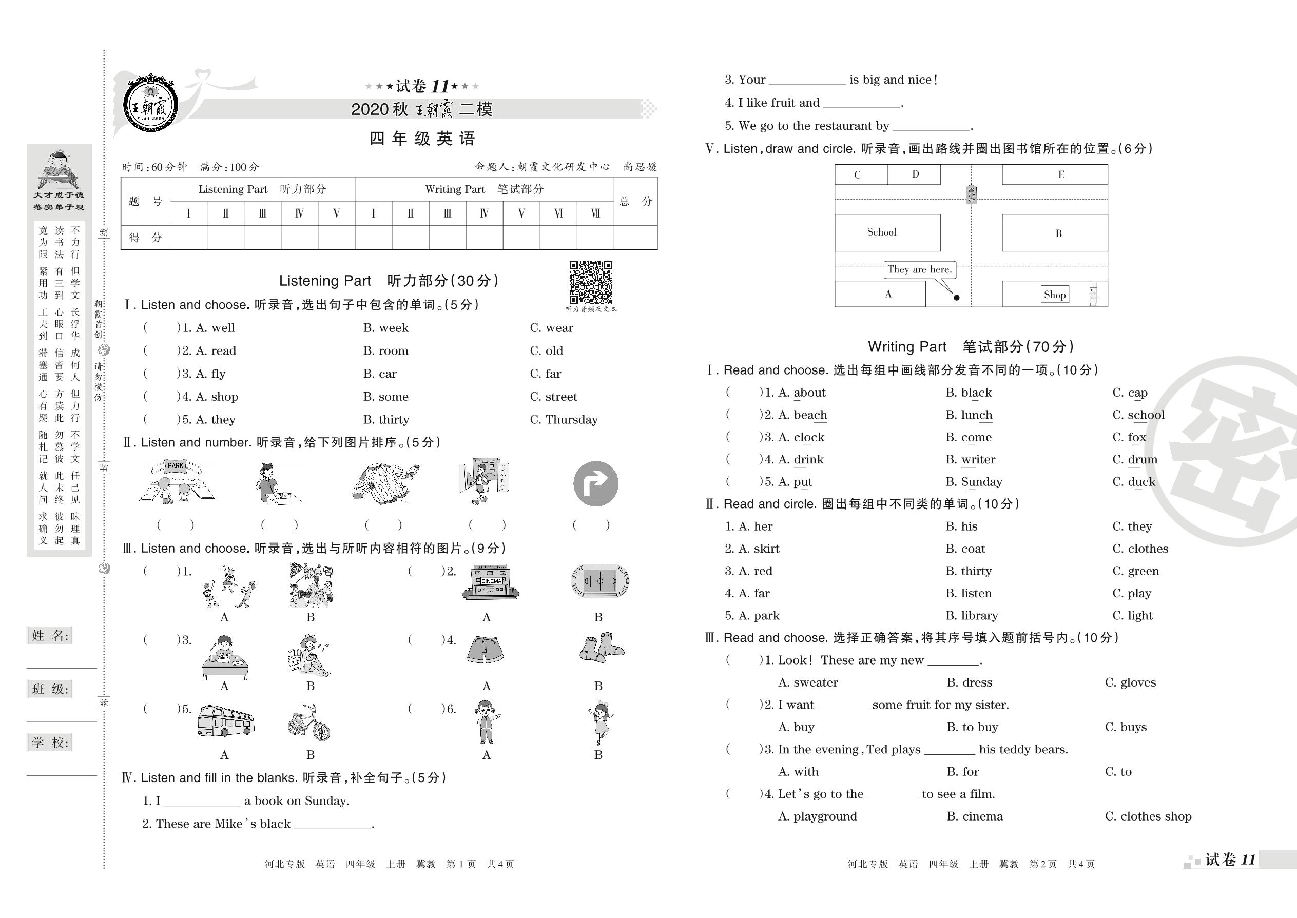 王朝霞期末模拟卷四年级上册英语(冀教版)_R21080790422【11】