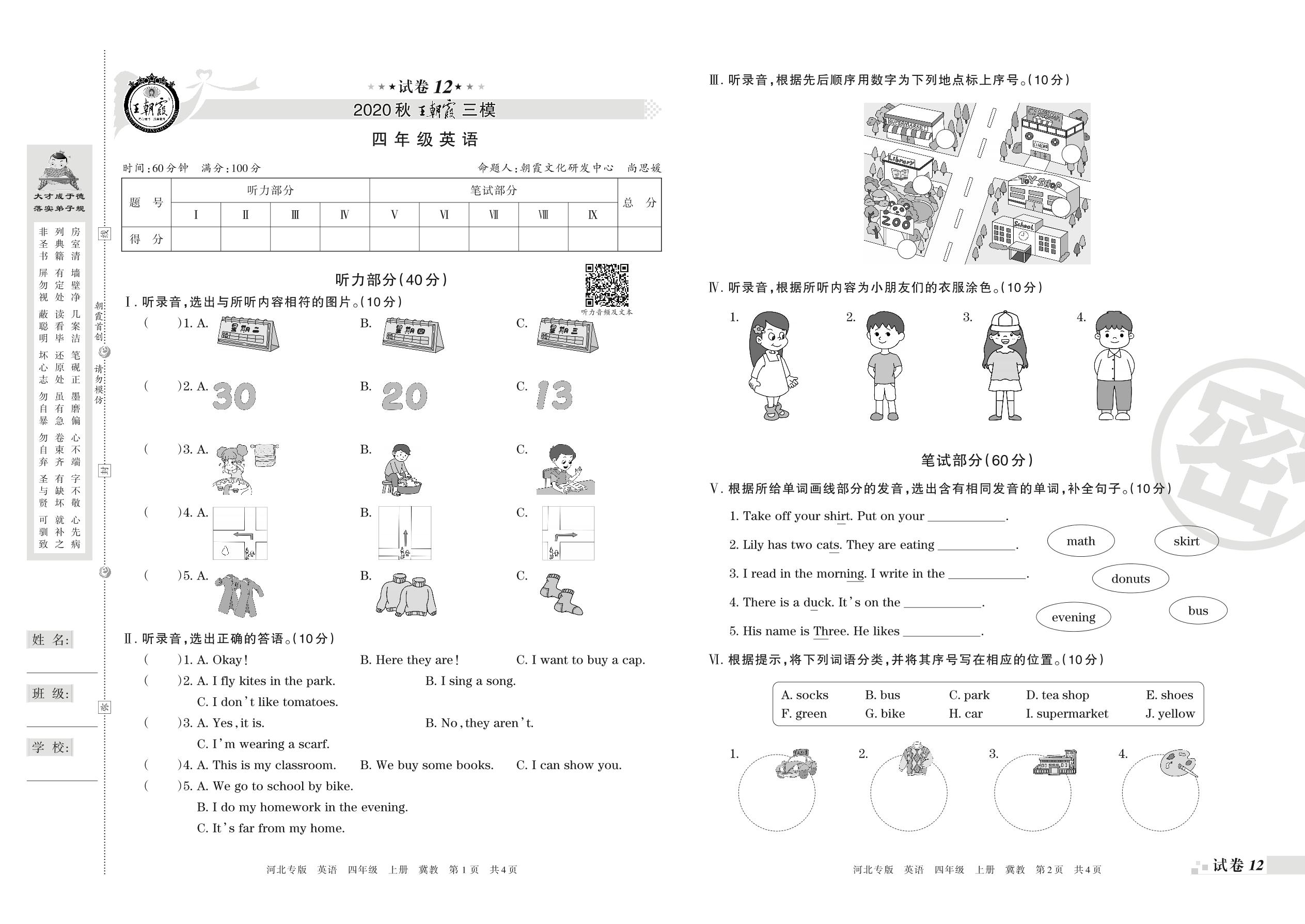 王朝霞期末模拟卷四年级上册英语(冀教版)_R21080790427【12】