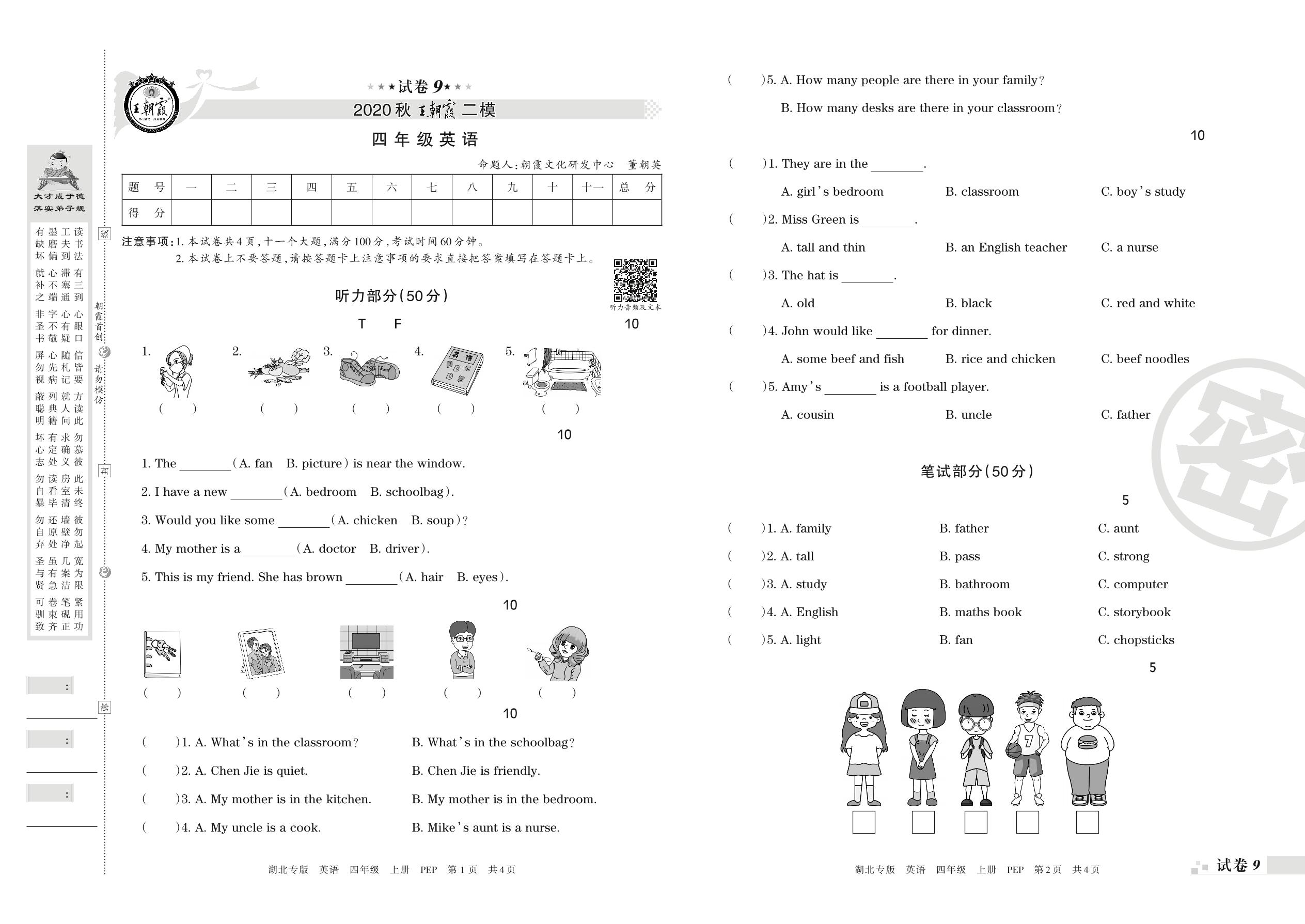 王朝霞期末模拟卷四年级上册英语(PEP版)_R21080790606【9】