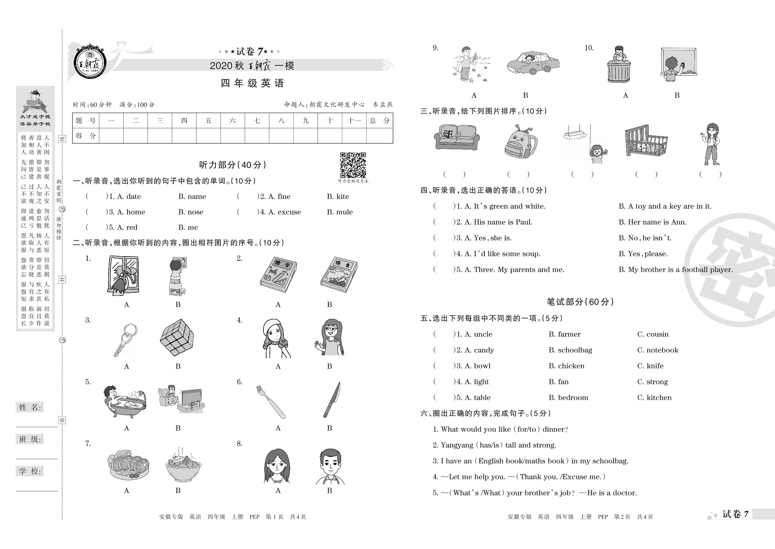 王朝霞期末模拟卷四年级上册英语(PEP版)_R21080790650【7】