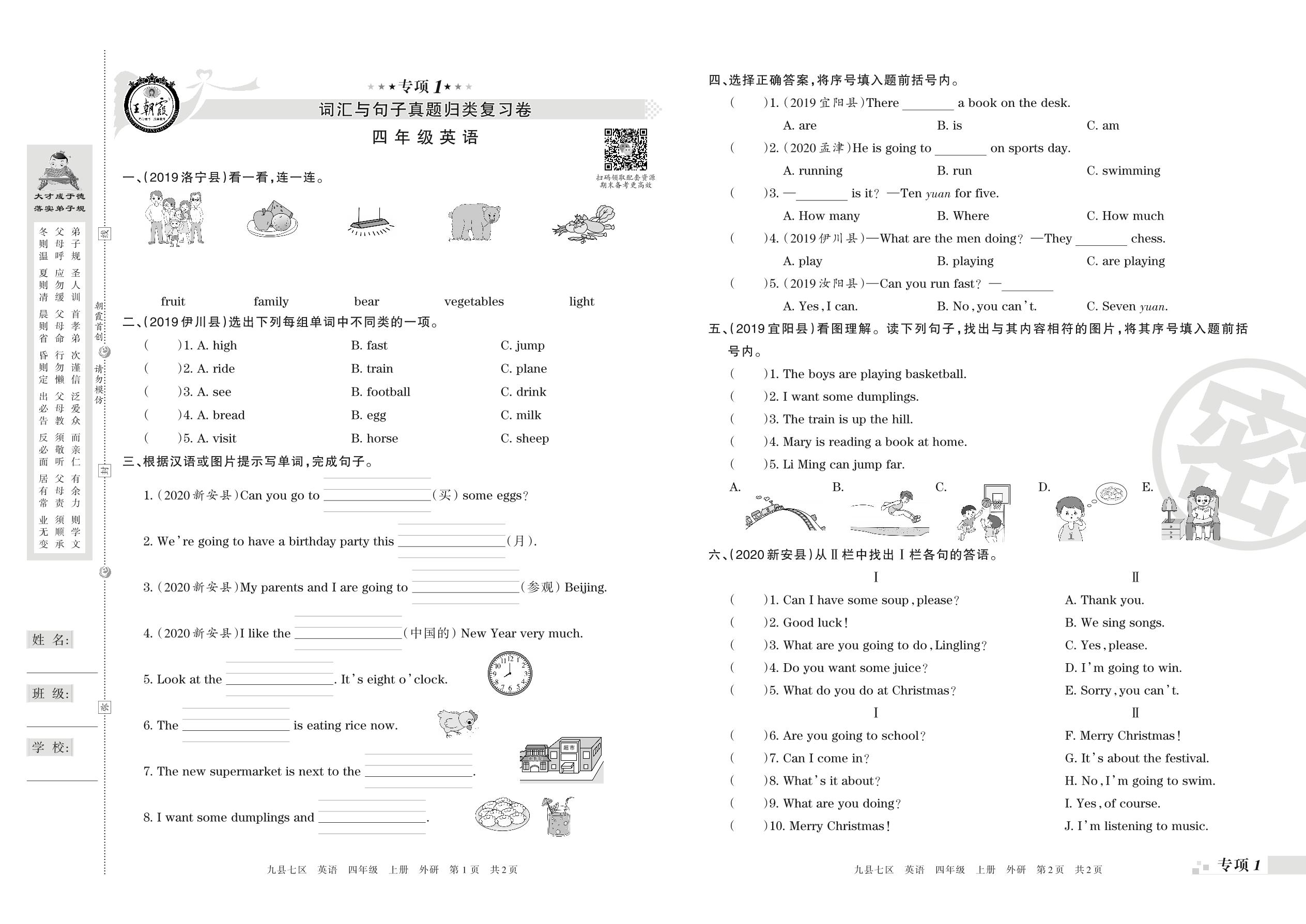王朝霞期末专项卷——词汇与句子、情景交际真题归类复习四年级上册英语(外研版)【0】