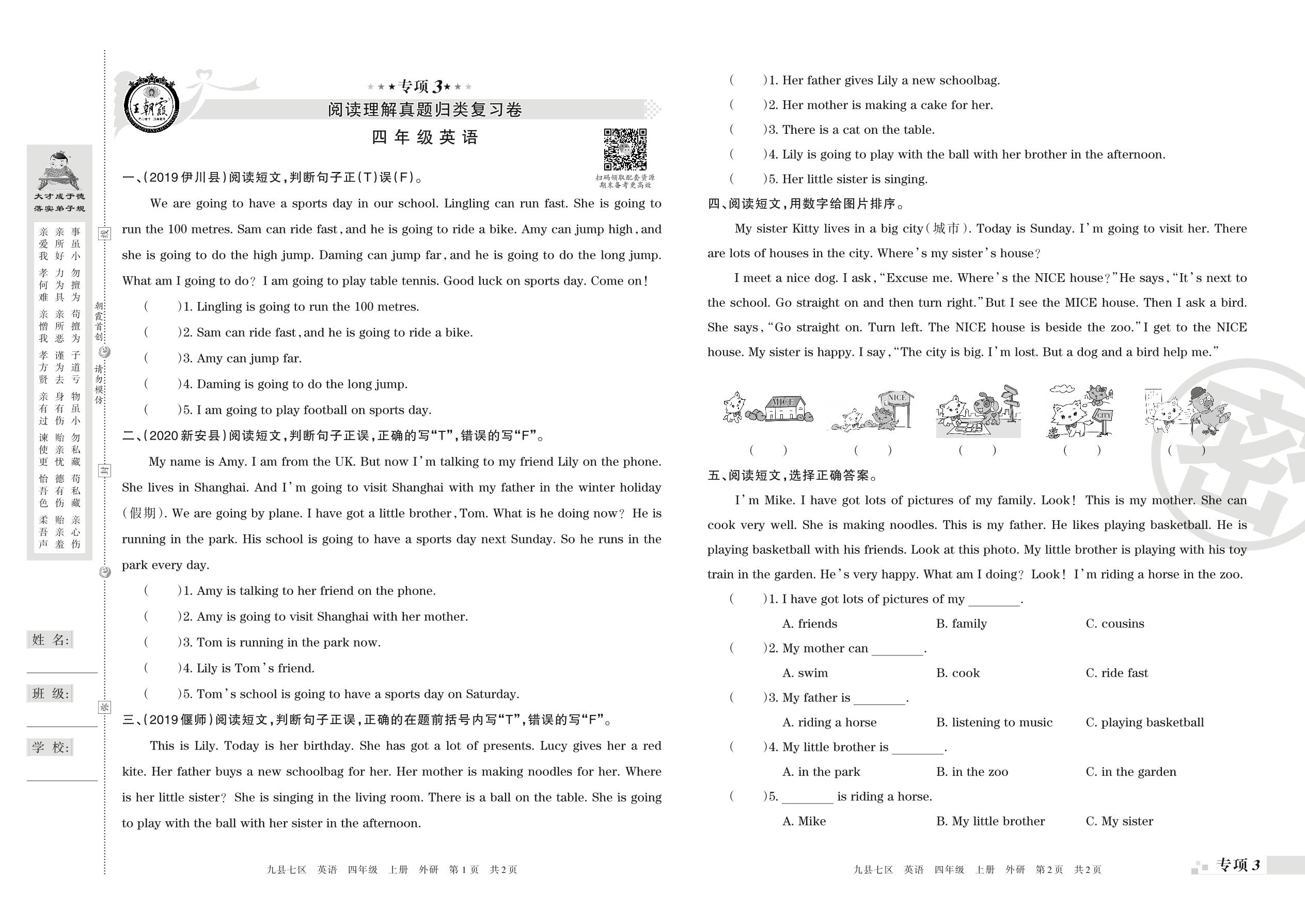 王朝霞期末专项卷——阅读理解真题归类复习、绘本阅读四年级上册英语(外研版)_R21080790715【0】