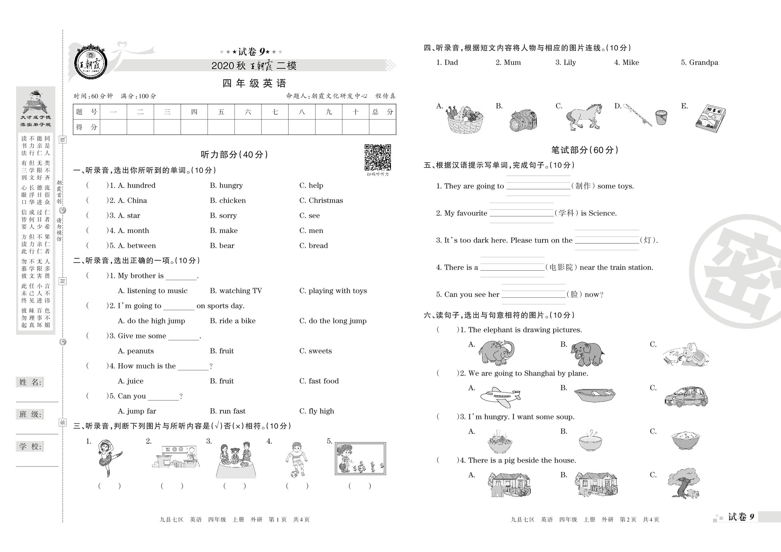 王朝霞期末模拟卷四年级上册英语(外研版)_R21080790807【9】