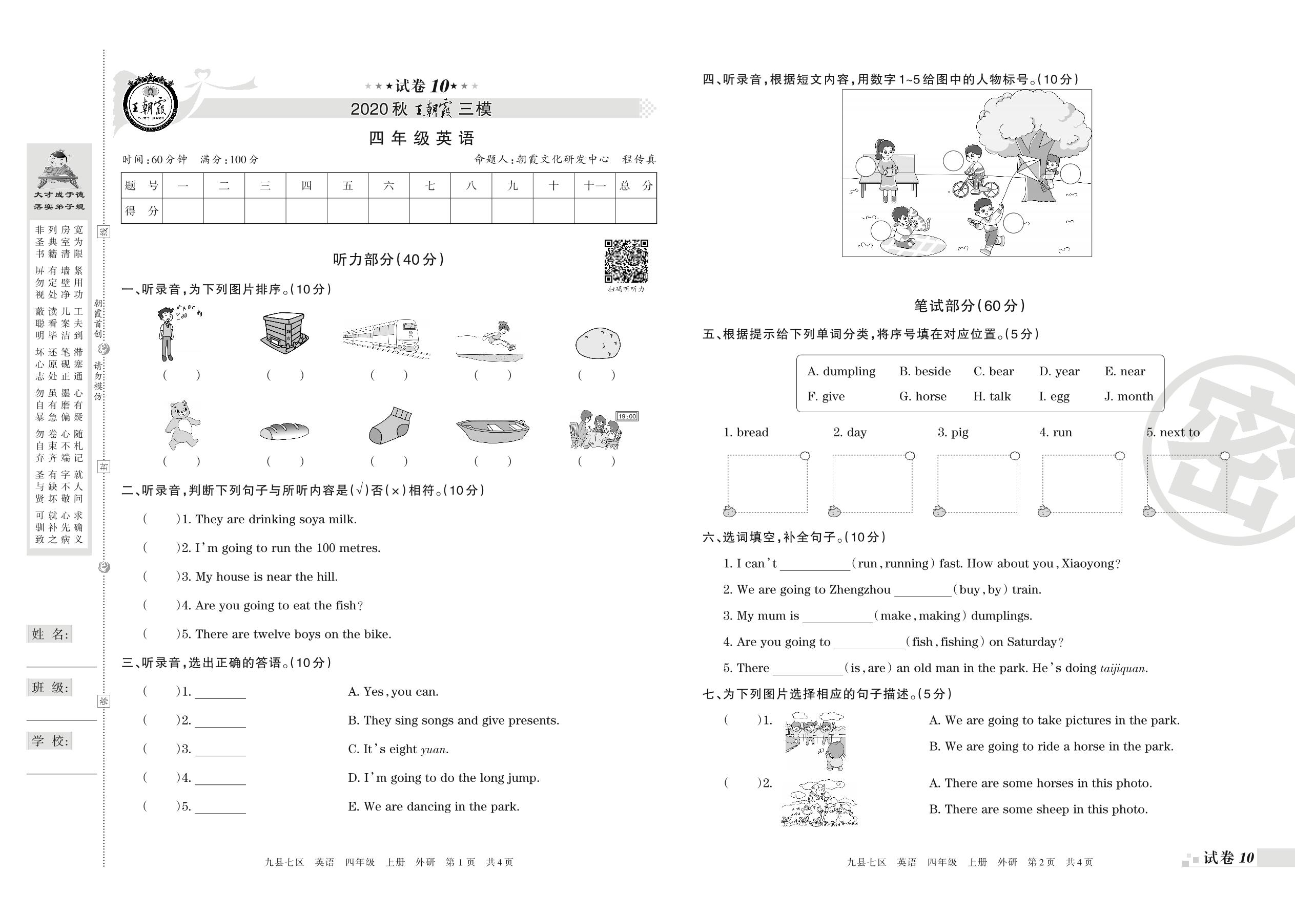 四年级英语外研版(三起始)上册期末卷