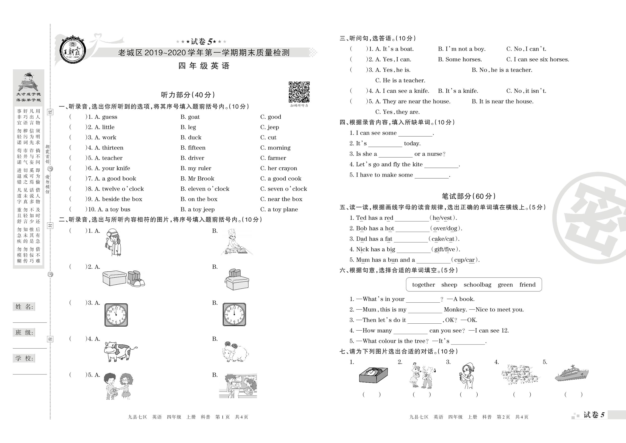 2019-2020学年第一学期洛阳市老城区四年级英语试卷(科普版)【5】