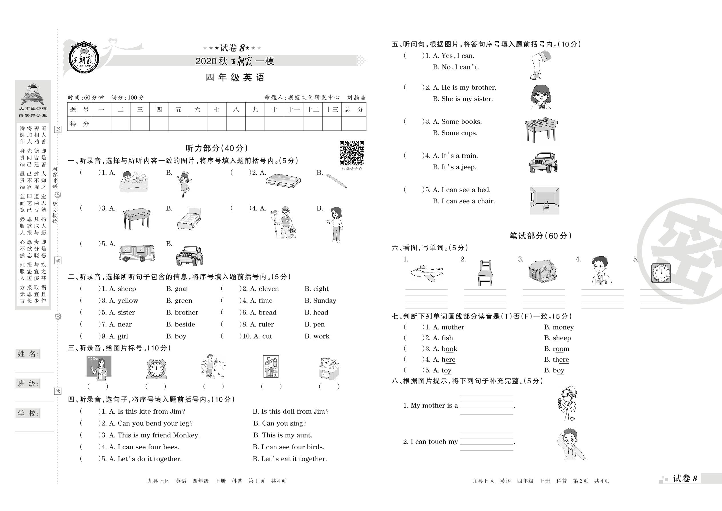 王朝霞期末模拟卷四年级上册英语(科普版)_R21080790910【8】