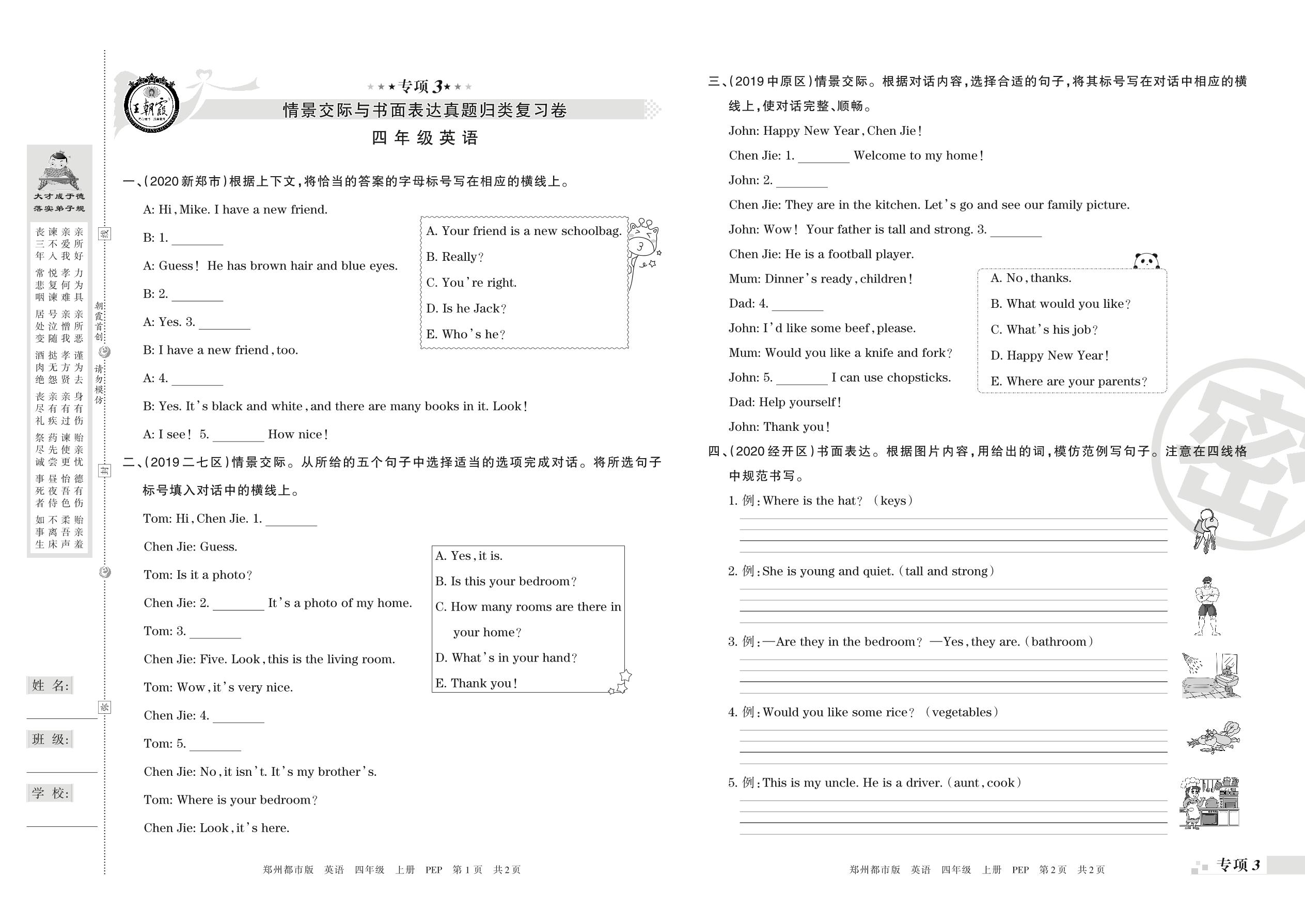 王朝霞期末专项卷——情景交际与书面表达真题归类复习、绘本阅读四年级上册英语(PEP版)_R21080790951【0】