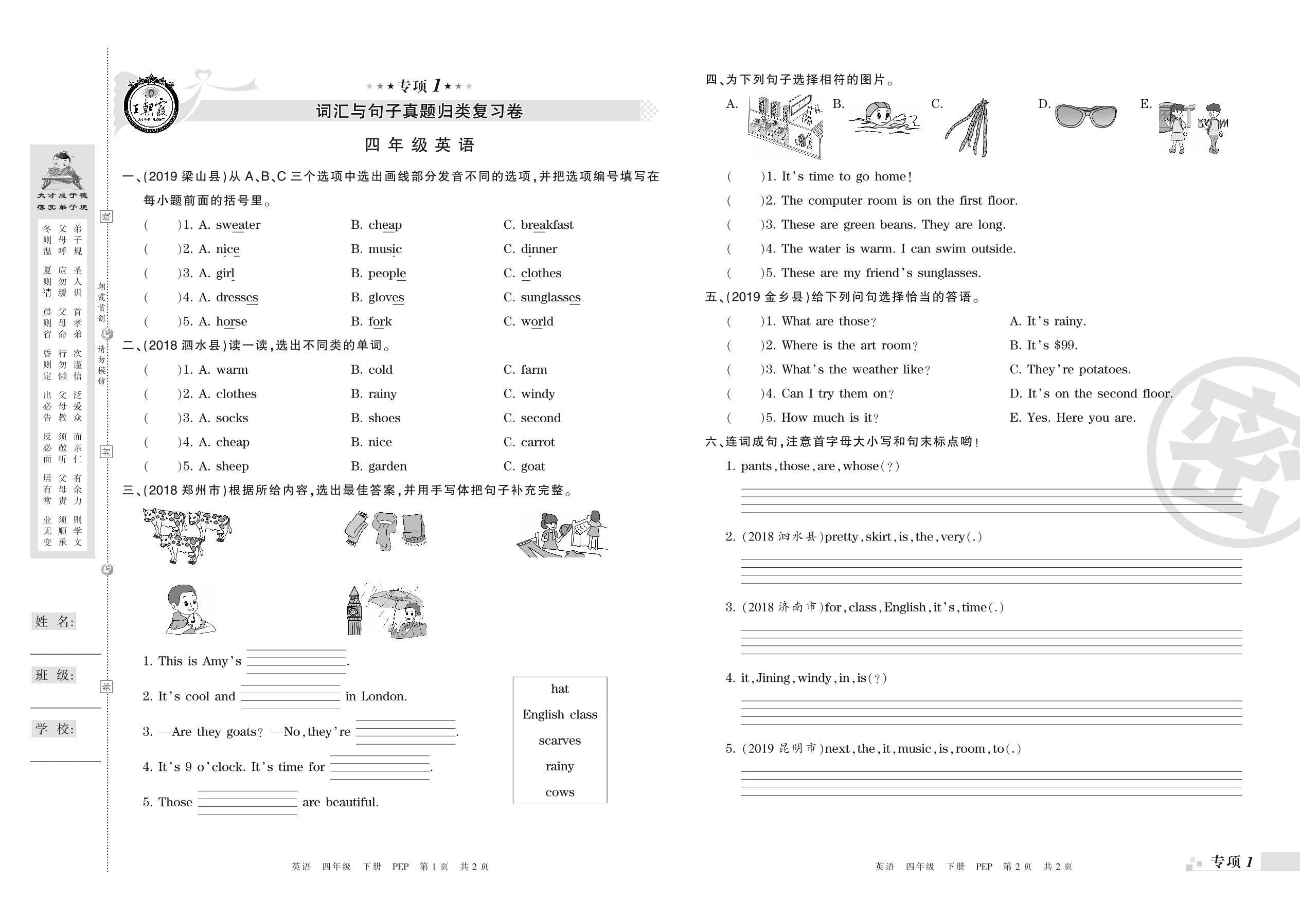王朝霞期末专项卷——词汇与句子、情景交际真题归类复习卷四年级下册英语(PEP版)_R21080791449【0】