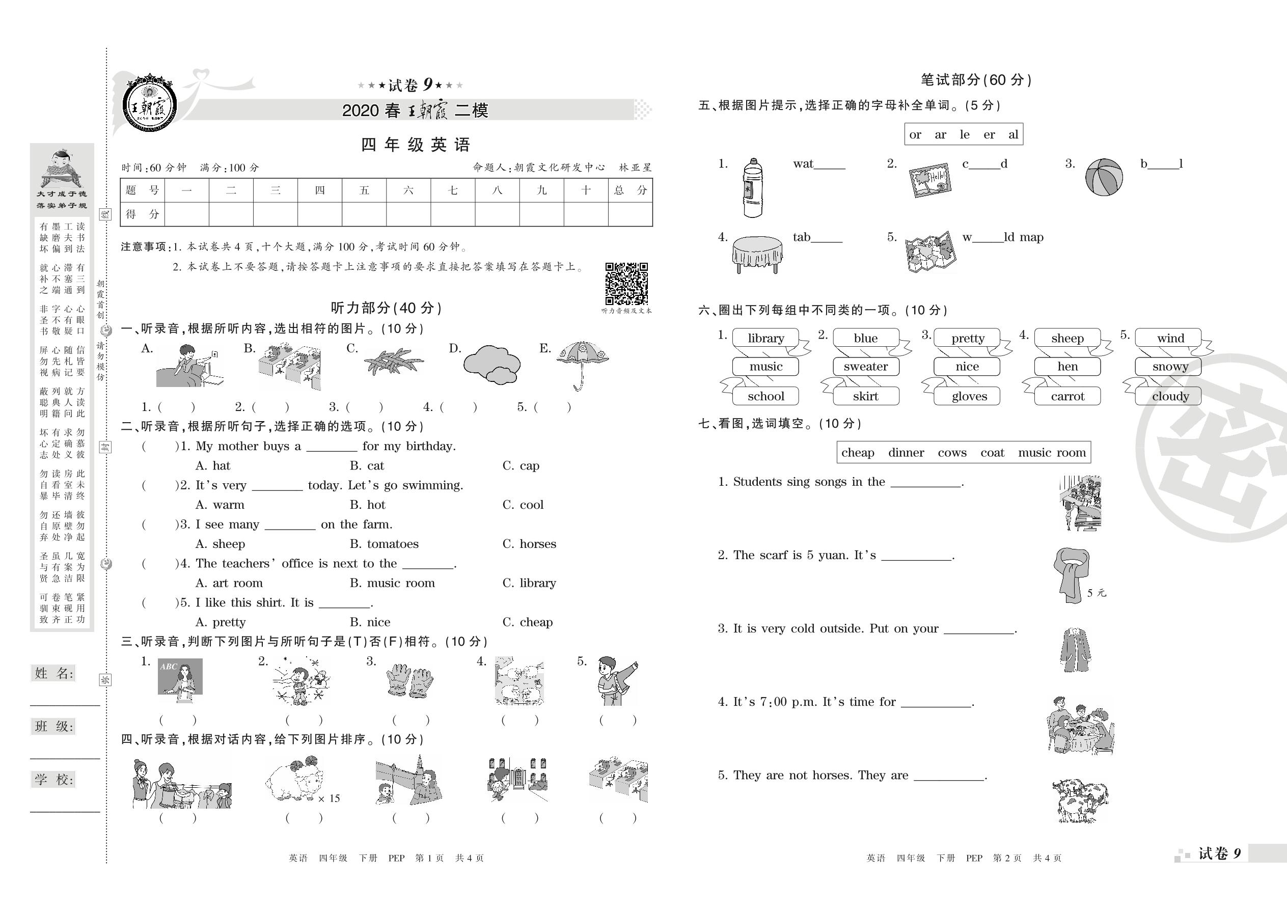 王朝霞期末模拟卷四年级下册英语(PEP版)_R21080791719【9】