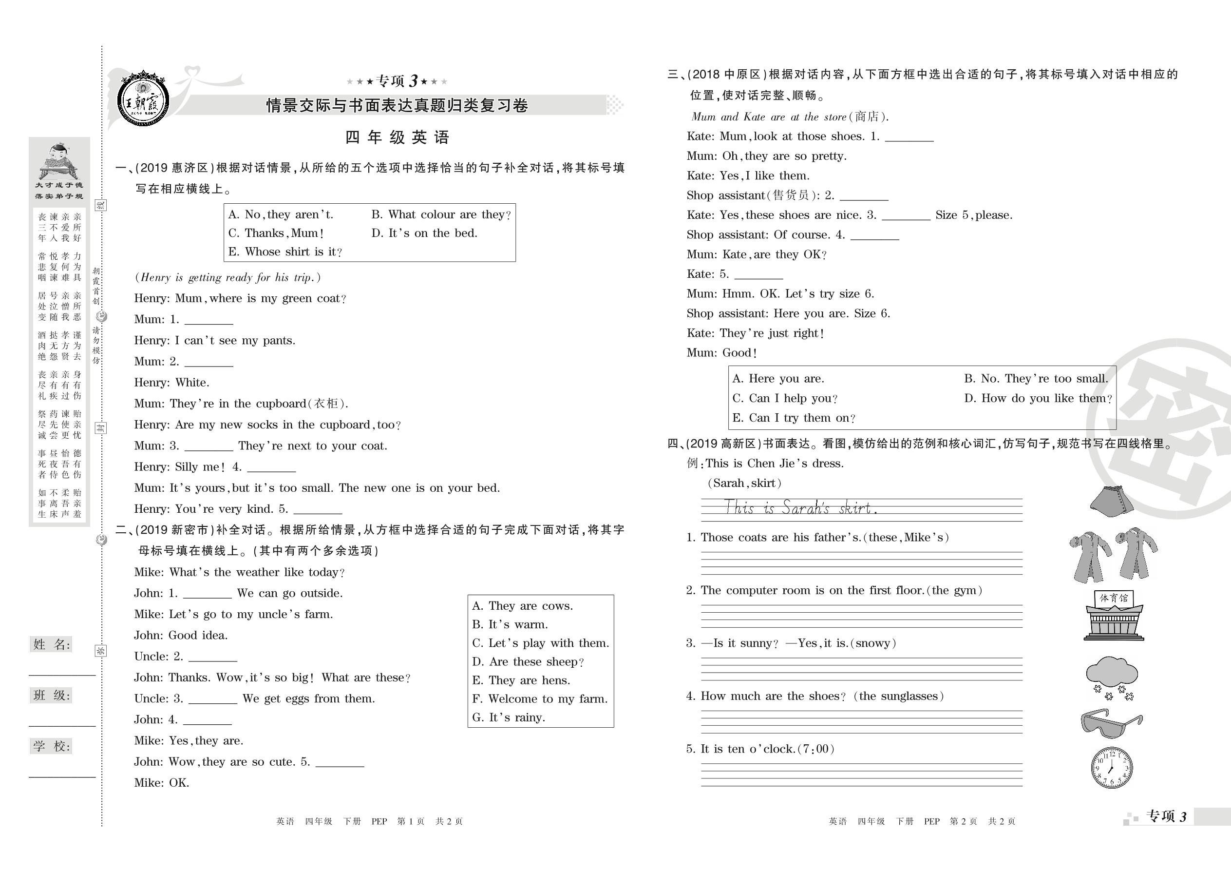 王朝霞期末专项卷——情景交际与书面表达真题归类复习卷、新颖题速递:绘本阅读四年级下册英语(PEP版)_R21080791729【0】