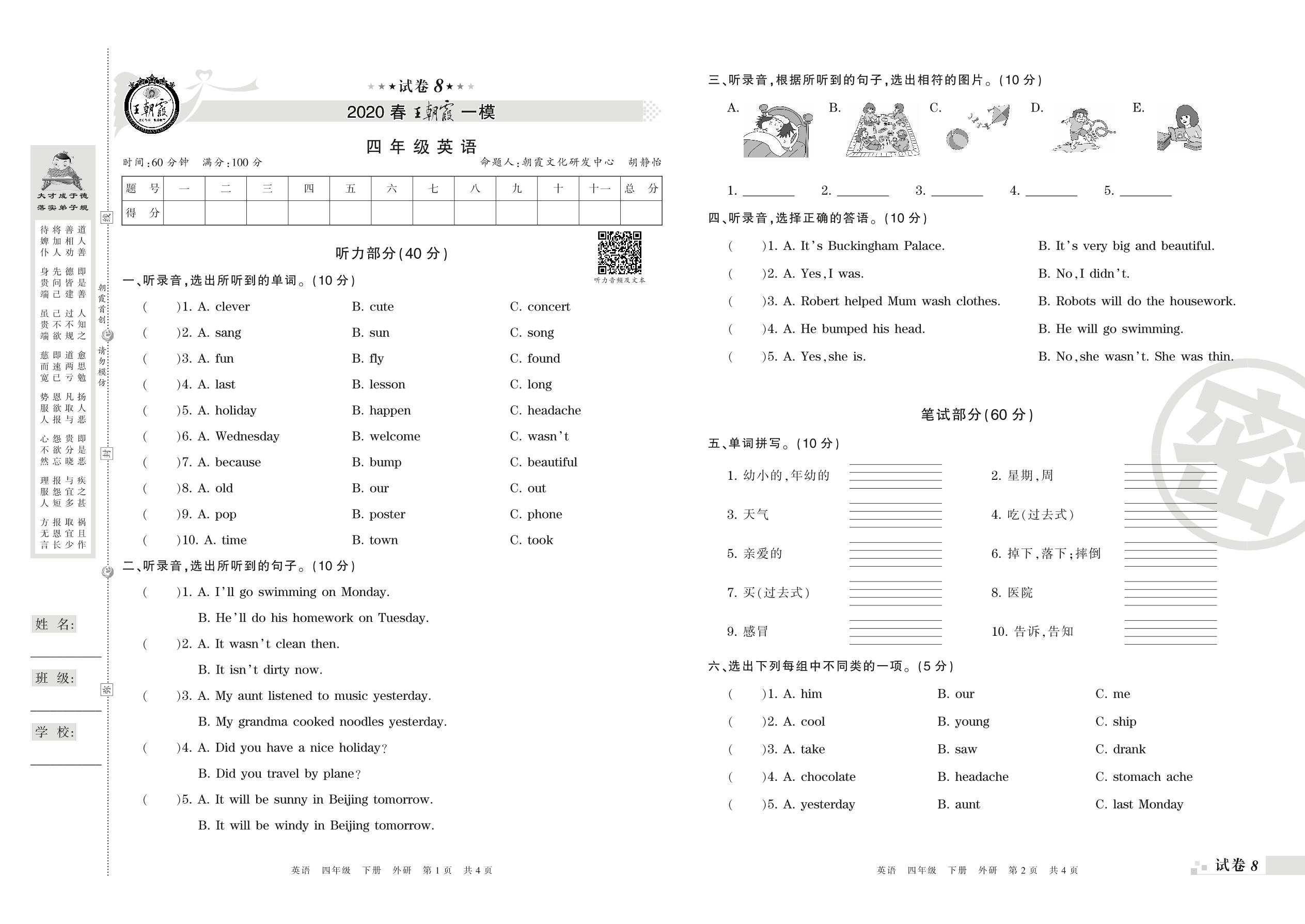 王朝霞期末模拟卷四年级下册英语(外研版)_R21080791954【8】