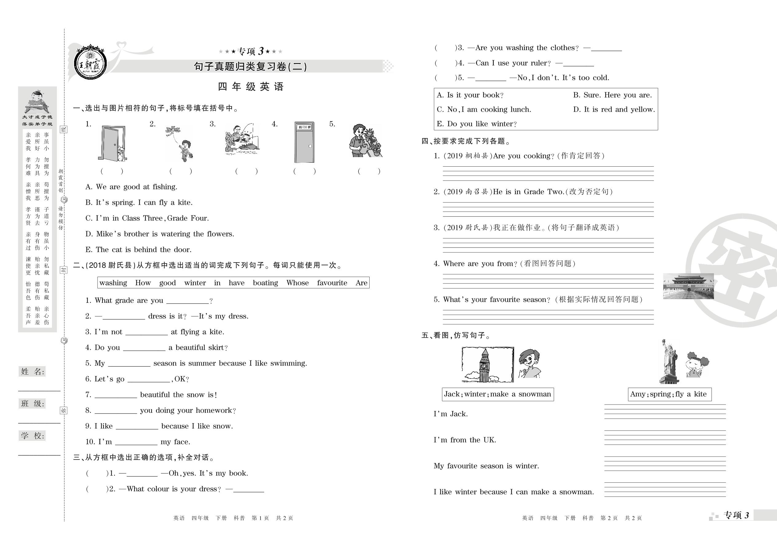 王朝霞期末专项卷——句子(二)、情景交际真题归类复习卷四年级下册英语(科普版)_R21080792707【0】