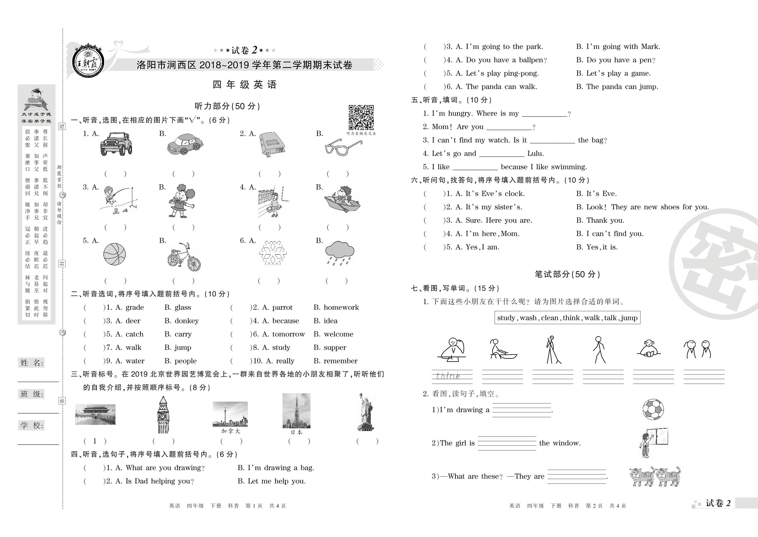 2018-2019学年第二学期洛阳市涧西区四年级英语试卷(科普版)_R21080792721【2】