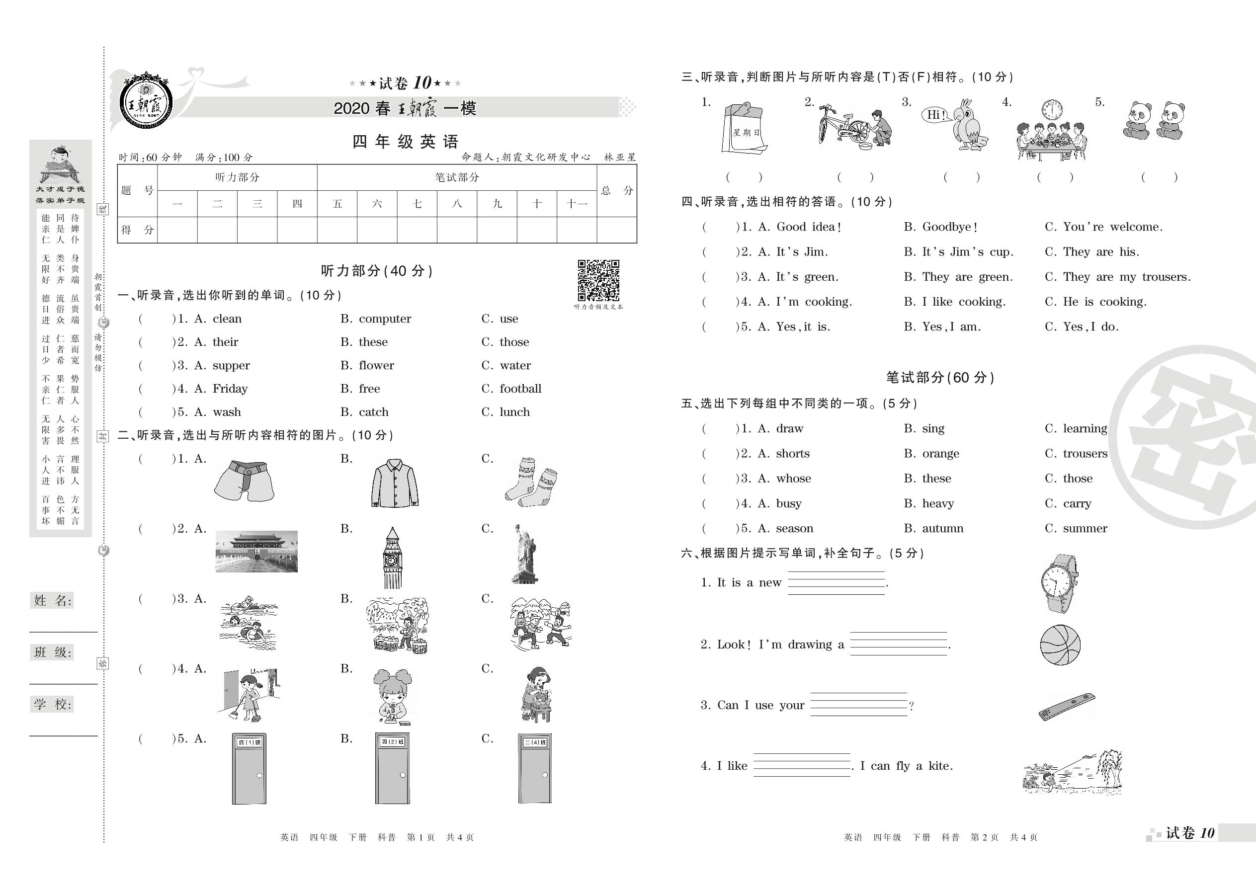王朝霞期末模拟卷四年级下册英语(科普版)_R21080792758【10】