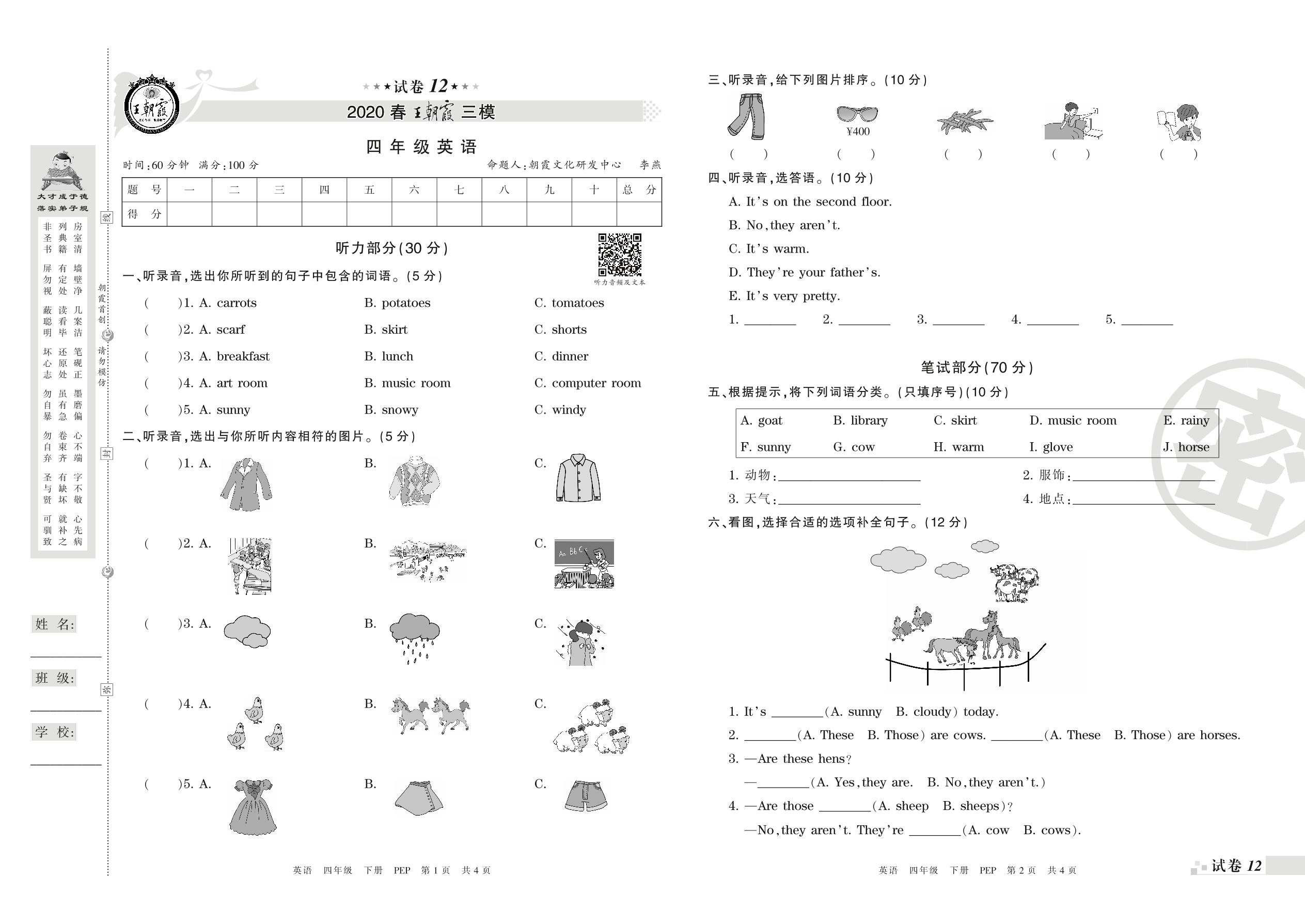 王朝霞期末模拟卷四年级下册英语(PEP版)_R21080792941【12】