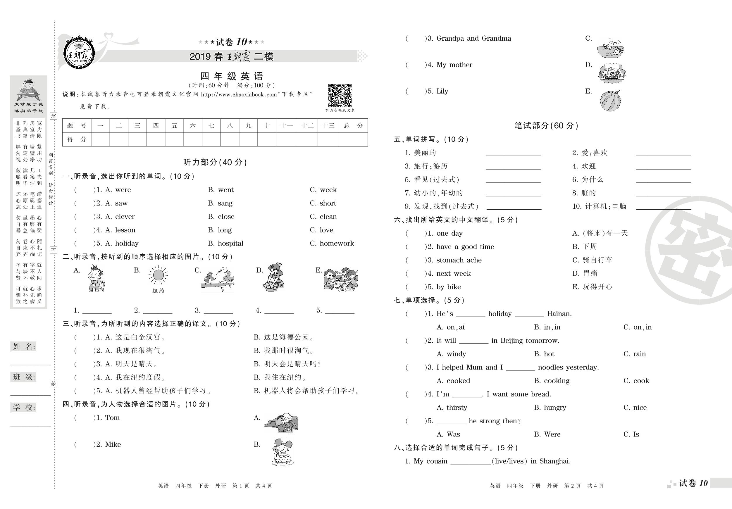 王朝霞期末模拟卷四年级下册英语(外研版)_R21080793058【10】