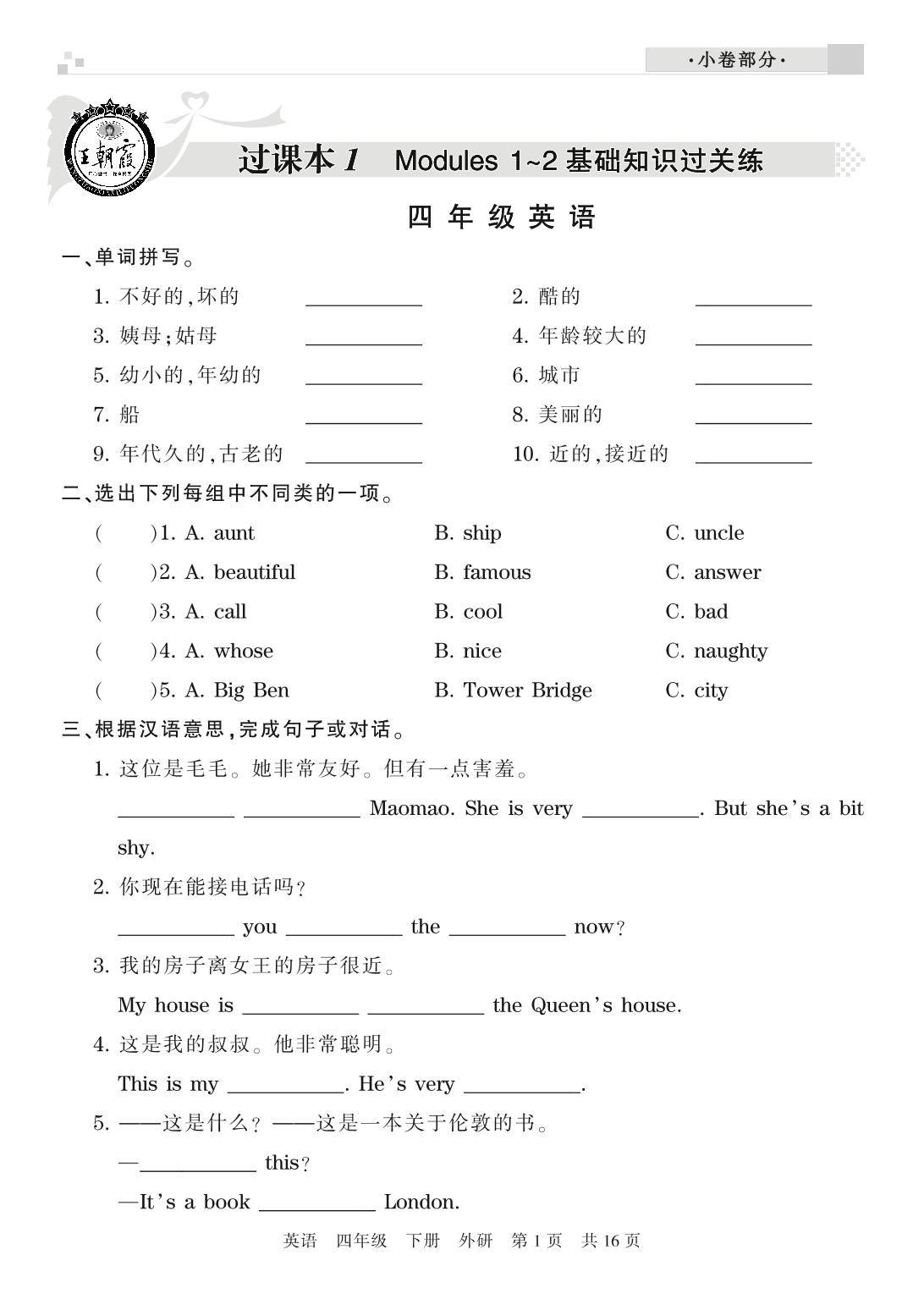 王朝霞期末过课本四年级下册英语(外研版)_R21080793102【0】