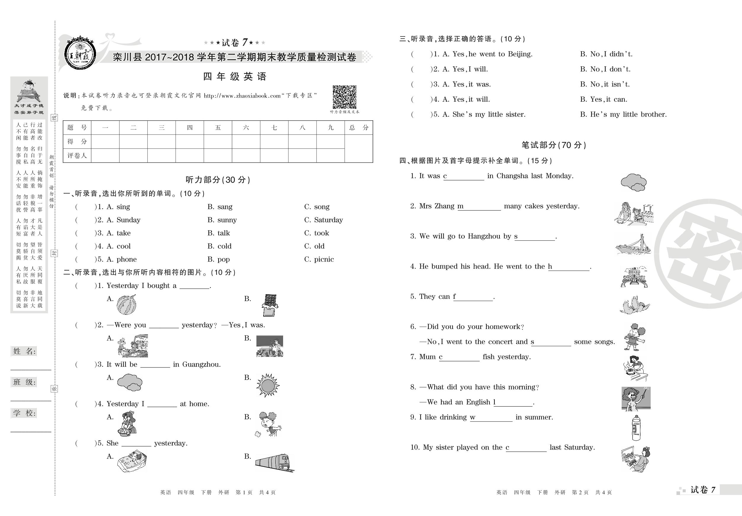 2017-2018学年第二学期洛阳市栾川县四年级英语试卷(外研版)【7】