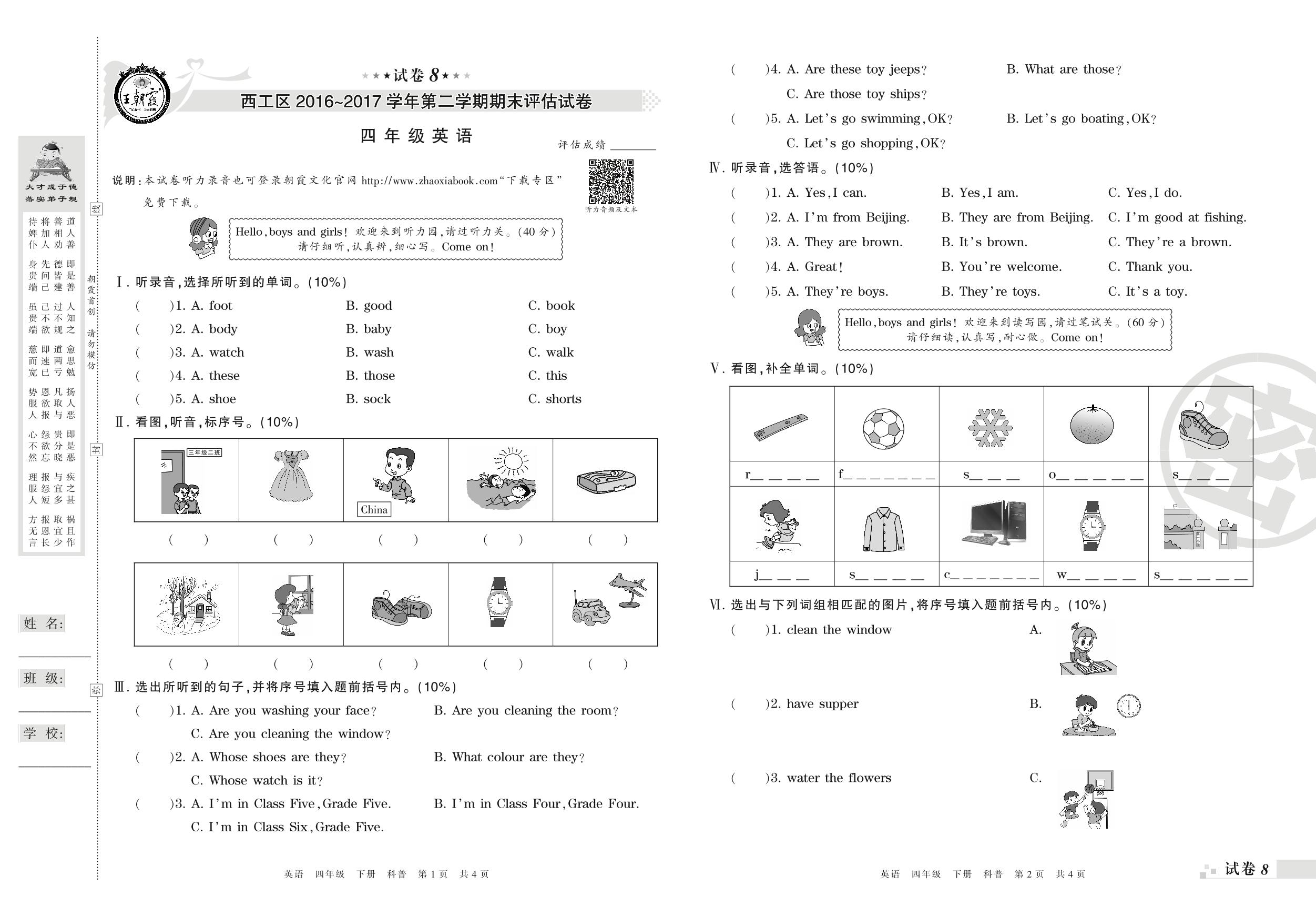 2016-2017学年第二学期洛阳市西工区四年级英语试卷(科普版)_R21080793220【8】