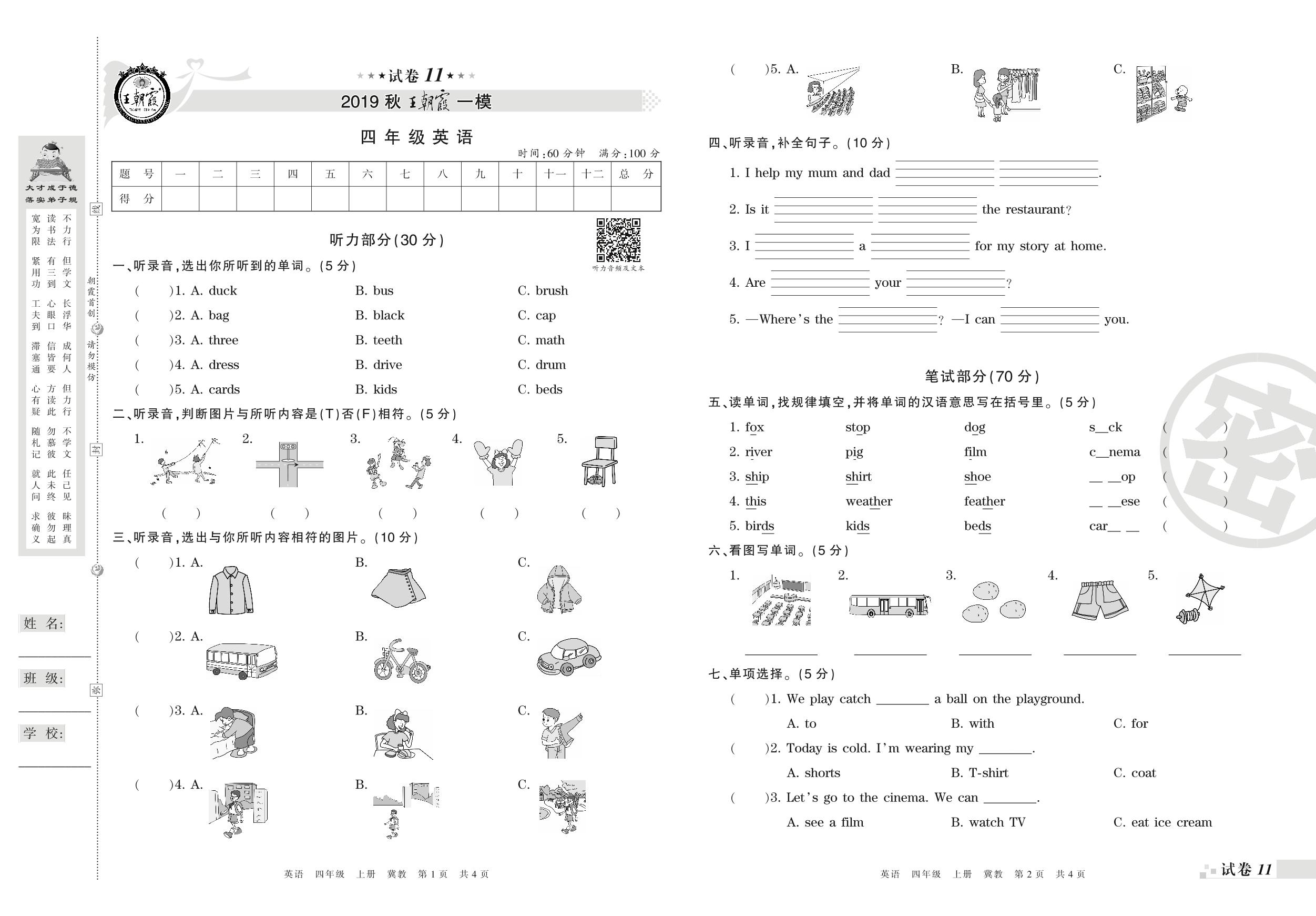王朝霞期末模拟卷四年级上册英语(冀教版)_R21080793430【11】