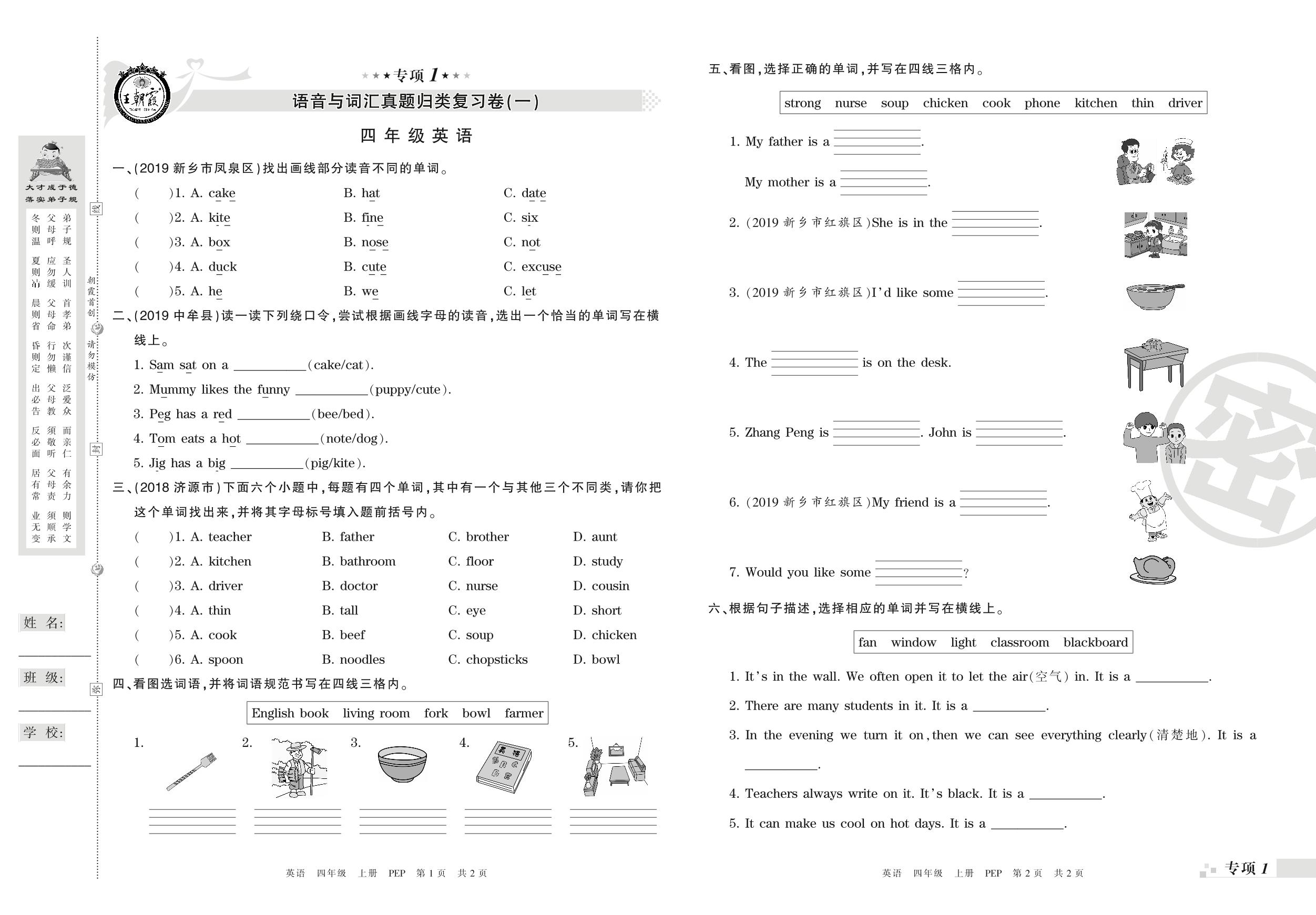 王朝霞期末专项卷——语音与词汇真题归类复习四年级上册英语(PEP版)_R21080793440【0】