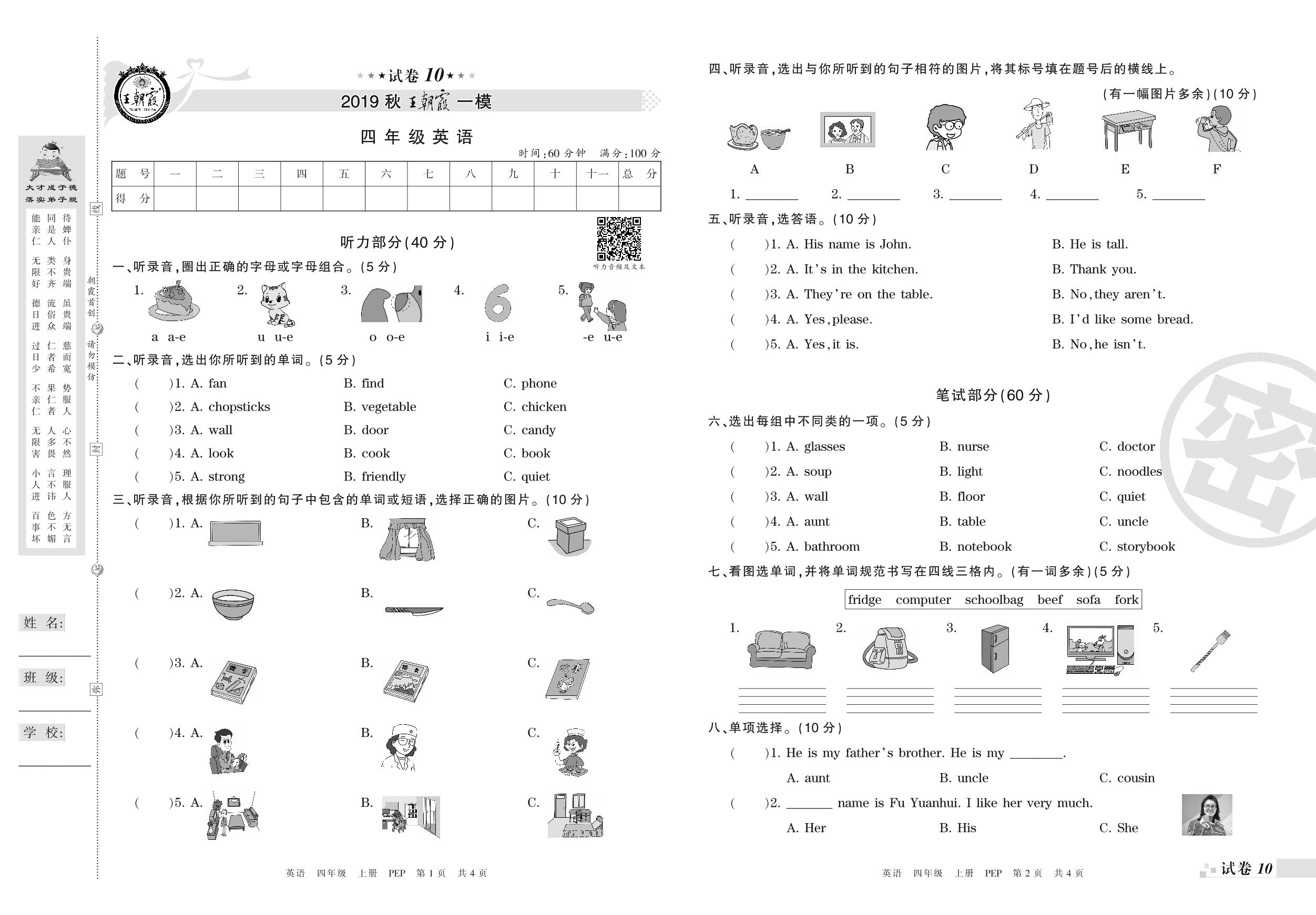 王朝霞期末模拟卷四年级上册英语(PEP版)_R21080793523【10】
