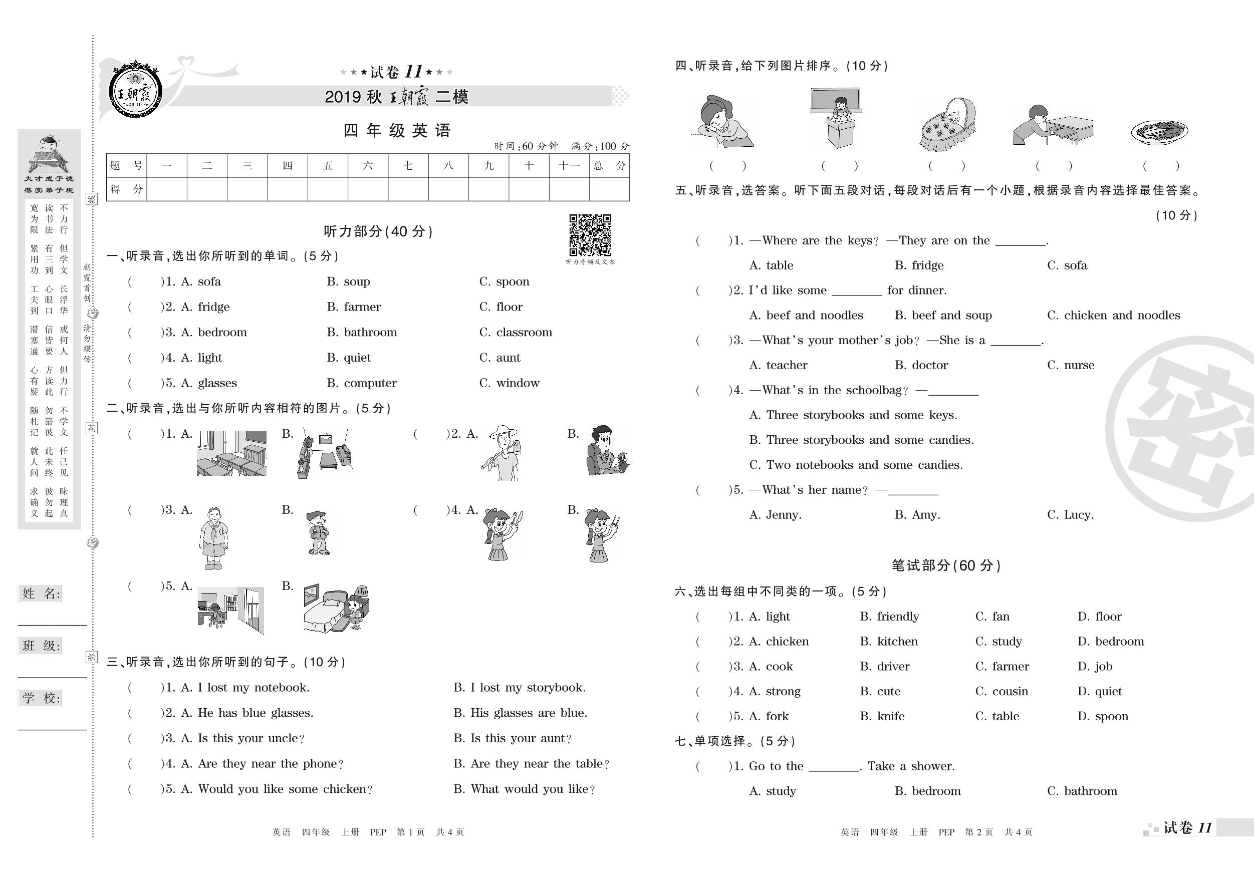 王朝霞期末模拟卷四年级上册英语(PEP版)_R21080793527【11】