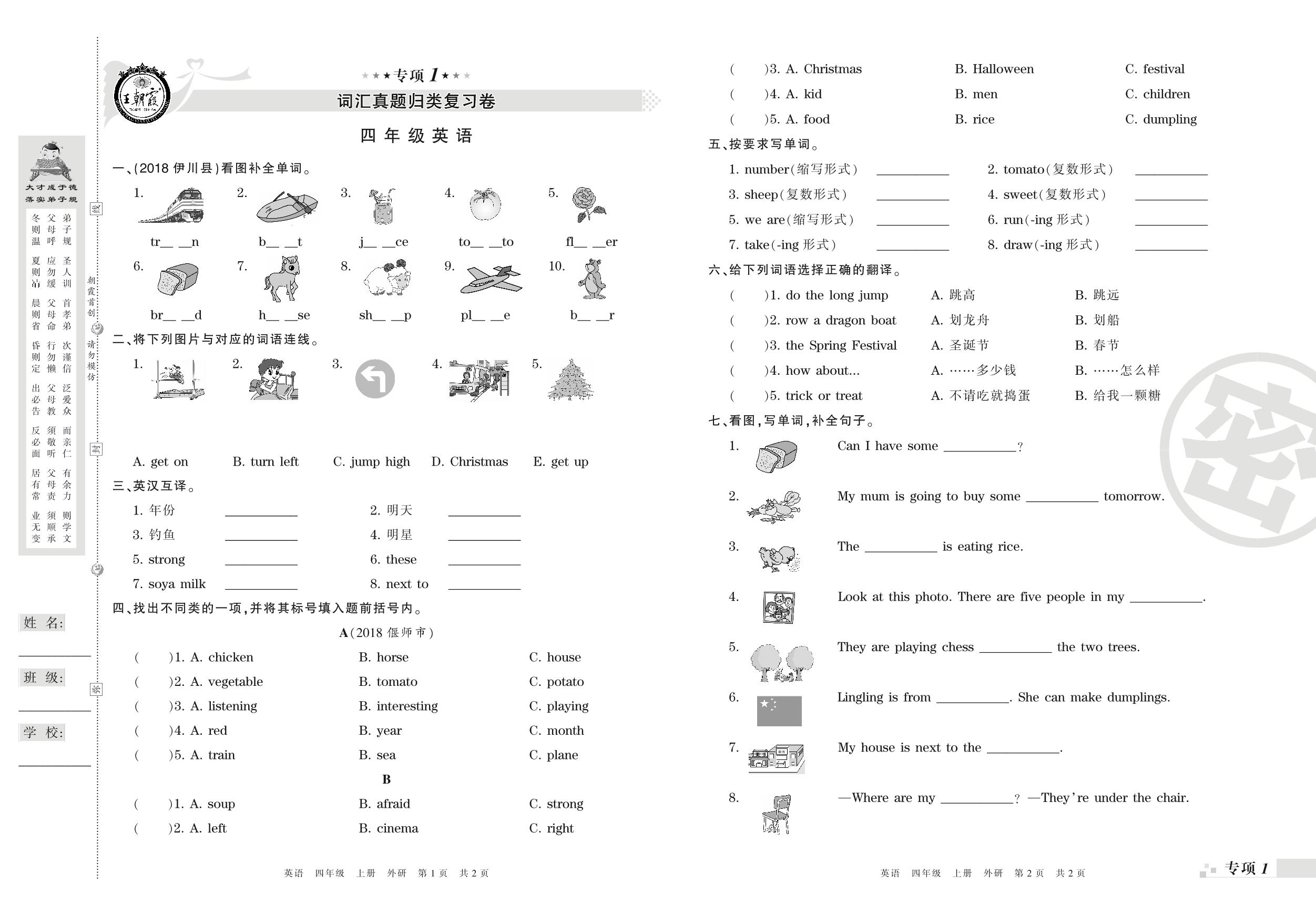 王朝霞期末专项卷词汇、句子真题归类复习四年级上册英语(外研版)_R21080793640【0】