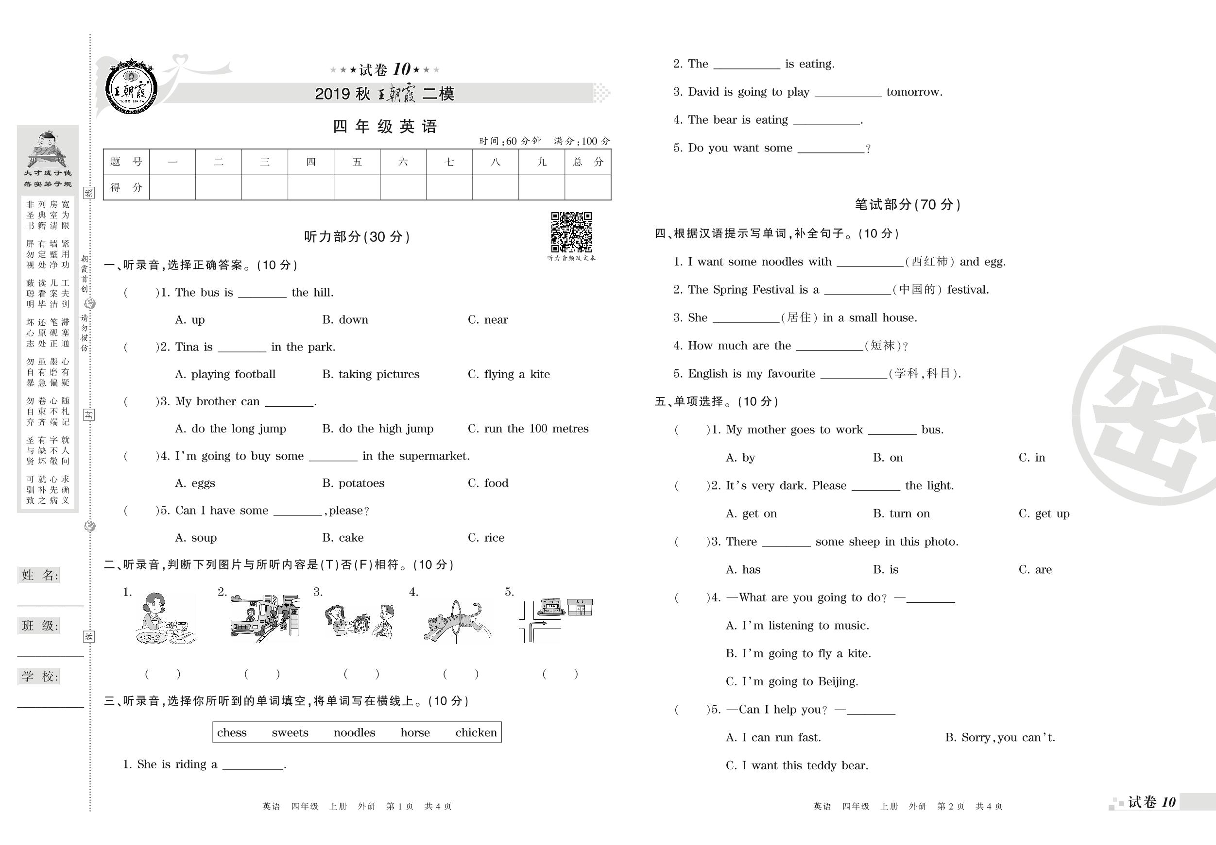 王朝霞期末模拟卷四年级上册英语(外研版)_R21080793727【10】