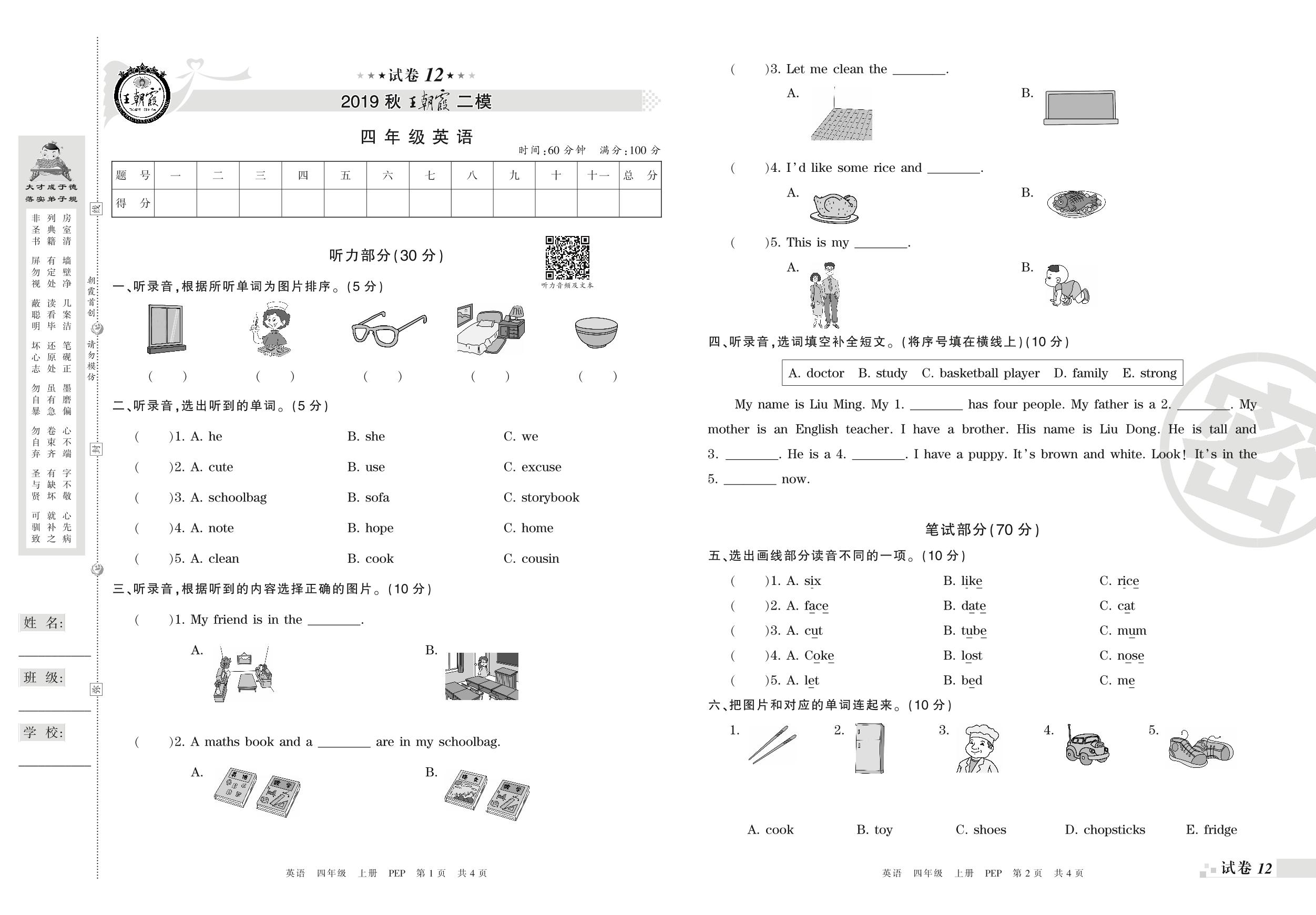 王朝霞期末模拟卷四年级上册英语(PEP版)_R21080793923【12】