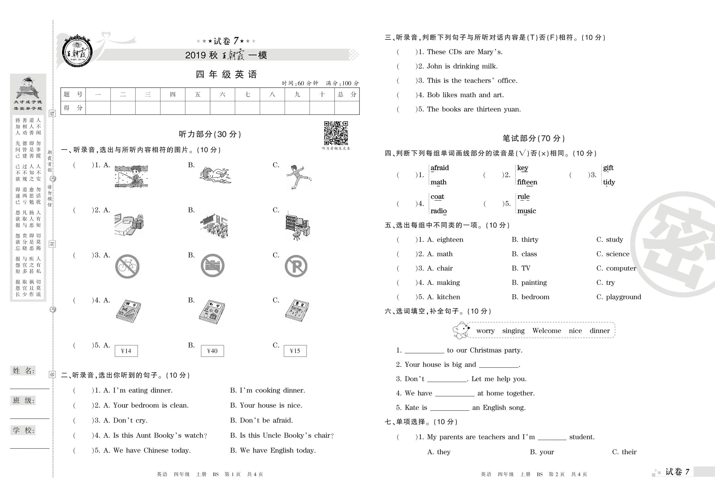 王朝霞期末模拟卷四年级上册英语(北师版)_R21080794146【7】