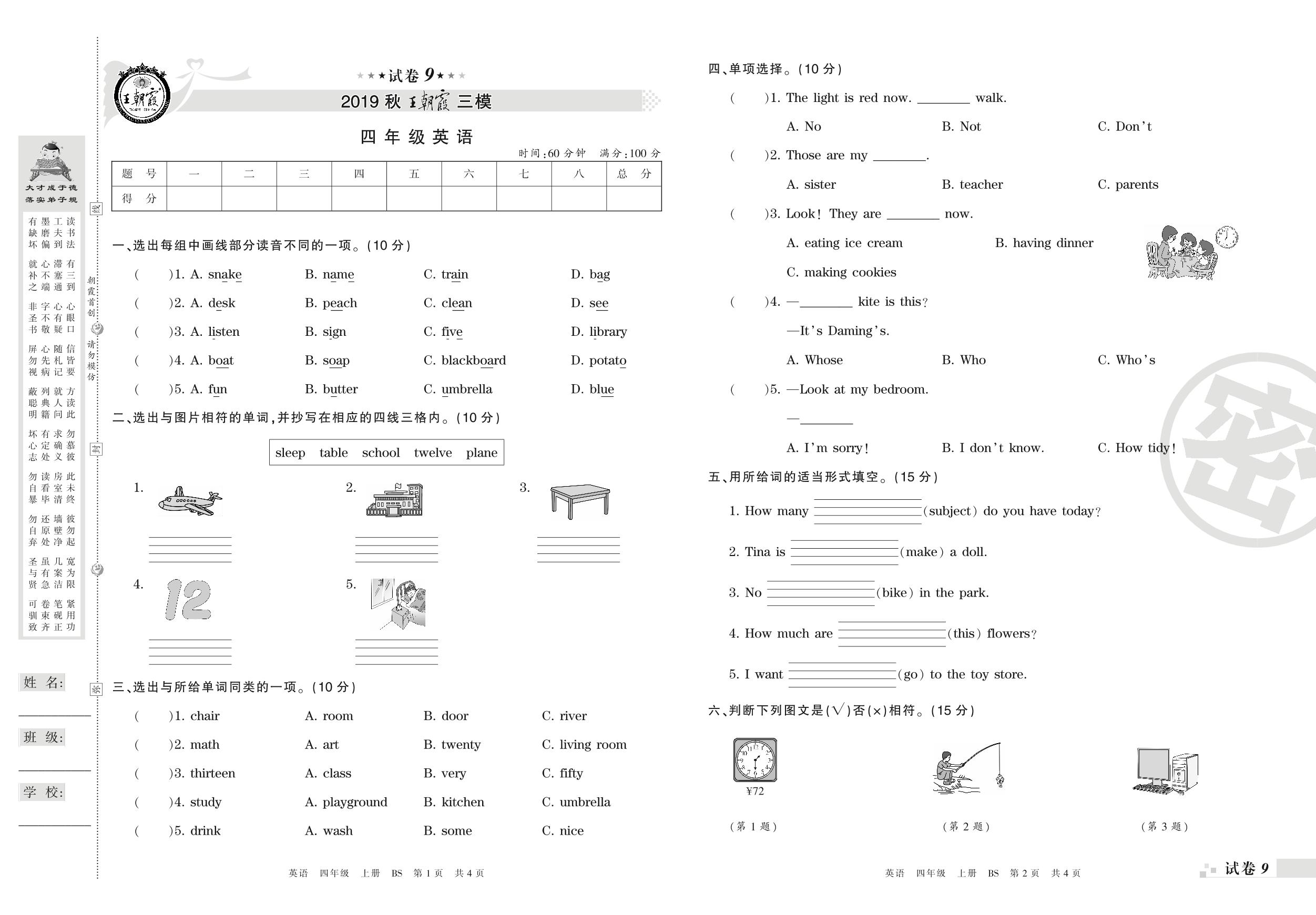 王朝霞期末模拟卷四年级上册英语(北师版)_R21080794154【9】