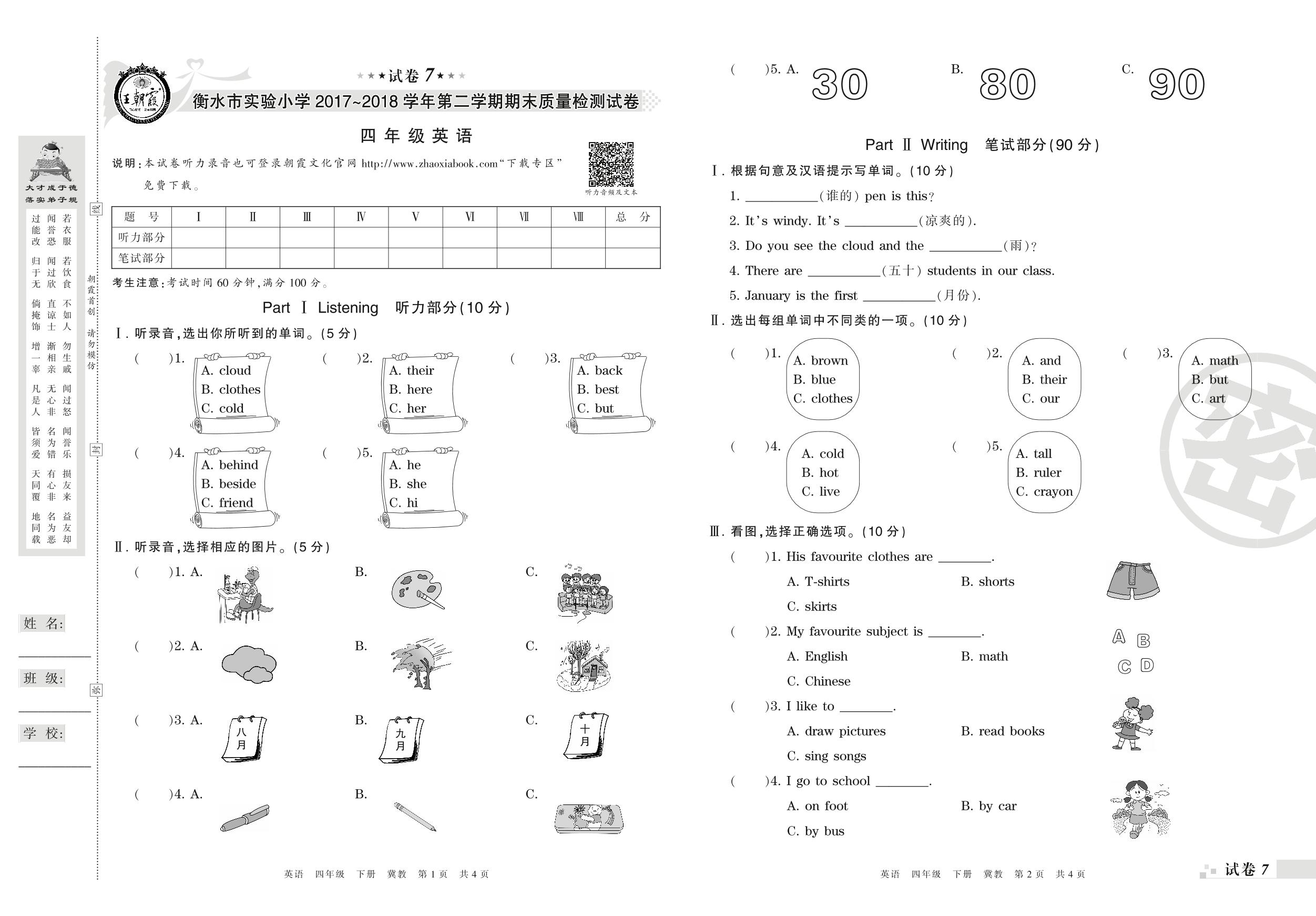 2017-2018学年第二学期衡水市实验小学四年级英语试卷(冀教版)【7】