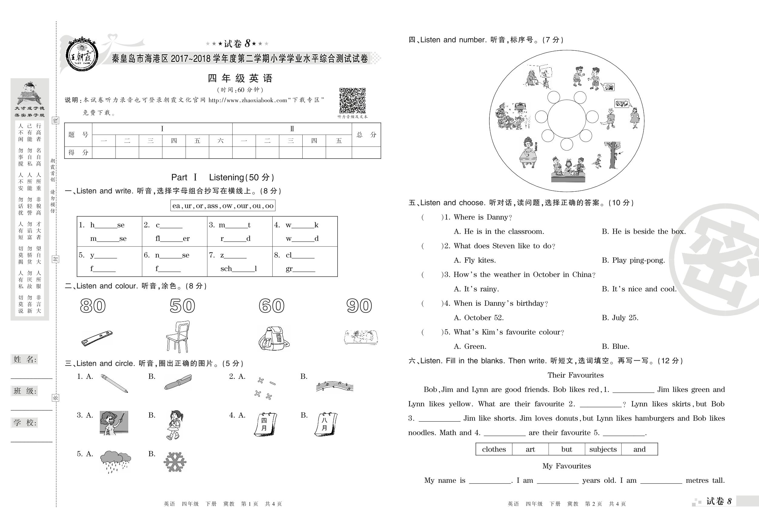 2017-2018学年第二学期秦皇岛市海港区四年级英语试卷(冀教版)【8】