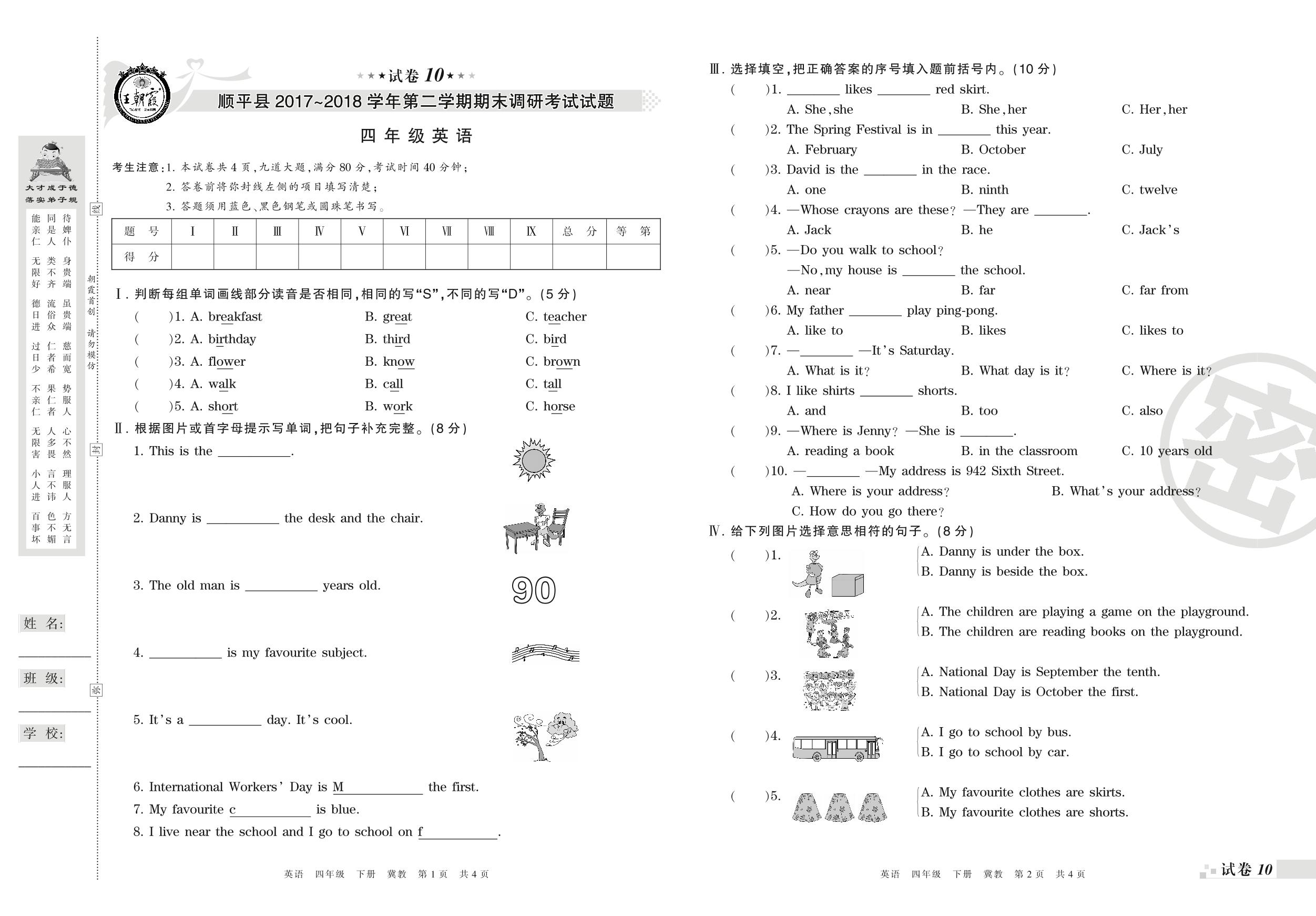 2017-2018学年第二学期保定市顺平县四年级英语试卷(冀教版)【10】
