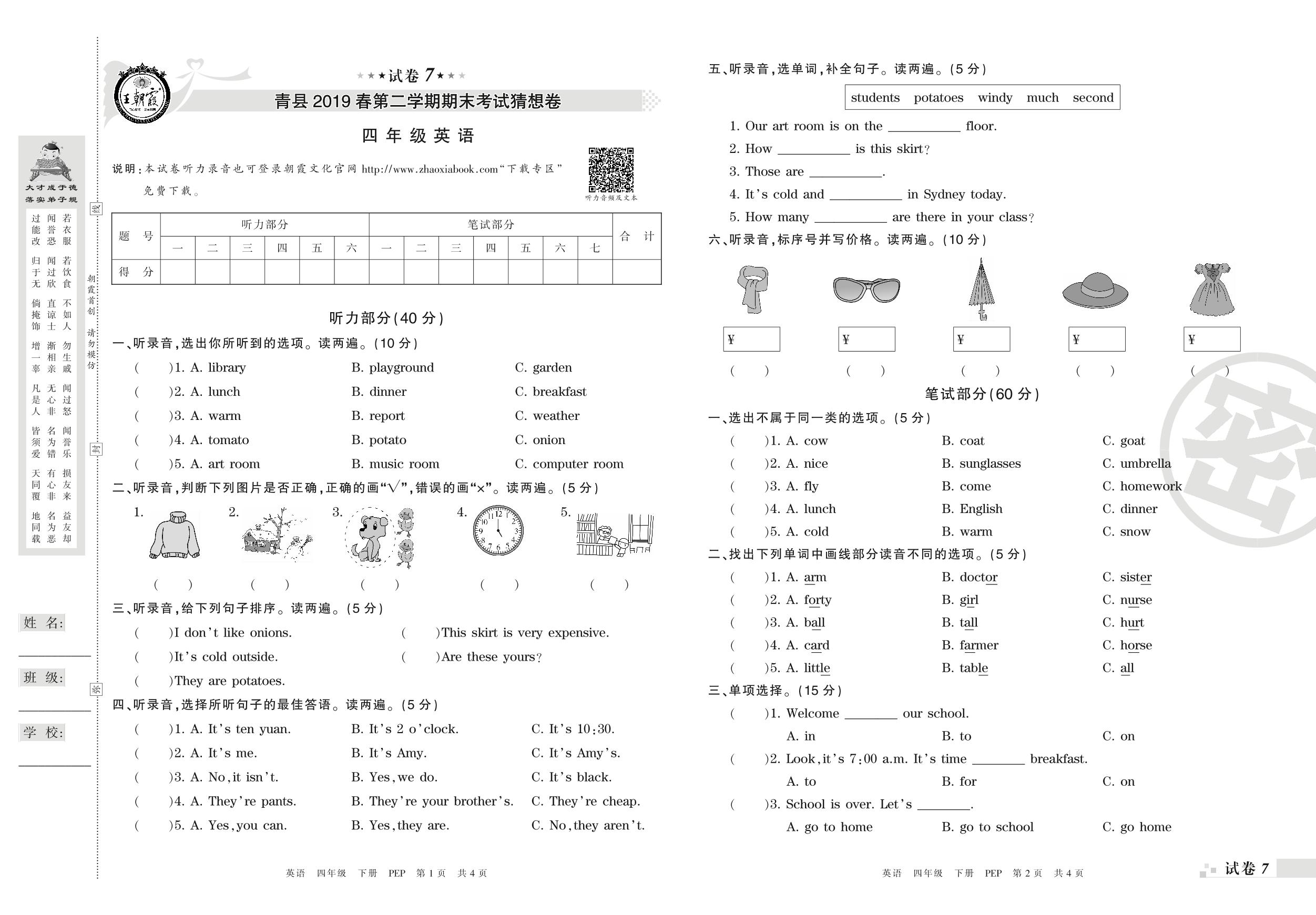 2018-2019学年第二学期沧州市青县猜想卷四年级英语试卷(PEP版)【7】